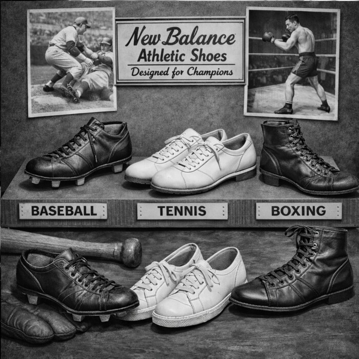 У 1941 році New Balance суттєво розширює свій асортимент, виходячи за межі бігового взуття. Компанія починає розробляти спеціалізовані моделі для бейсболу, тенісу та боксу, враховуючи особливості рухів і навантажень у кожному виді спорту. Це дозволило бренду закріпити репутацію виробника функціонального взуття, створеного з урахуванням потреб професійних спортсменів. |