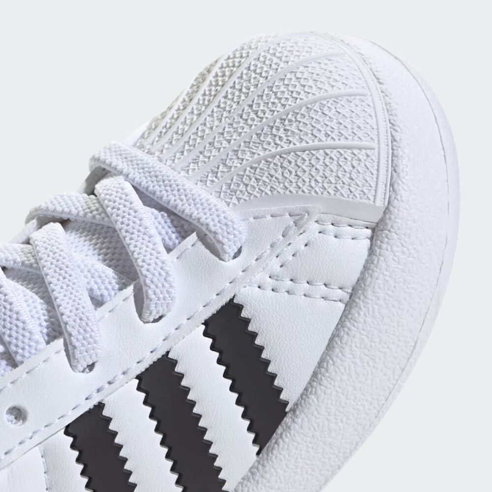 Колекція Adidas Originals створена для тих, хто не боїться виділятися, хто впевнено крокує вулицями мегаполіса та цінує бездоганний стиль у кожній деталі. Кеди Adidas Originals Adifom Superstar 36 — це легендарний стиль у форматі для найменших, створений для тих, хто вже з дитинства любить вирізнятися. Ікона вуличної моди, що бере початок у спортивному світі, тепер стає частиною яскравих дитячих образів, даруючи кожному кроку нотку впевненості та стилю. Верх із синтетичних матеріалів гарантує комфорт для ніжок Вашої дитини навіть під час активних ігор. Фірмова "мушля" на носку — не просто стильний акцент, а й надійний захист пальчиків, що так важливо для безпечних пригод. Еластична шнурівка та петельки на язичку й п’яті дозволяють швидко та легко взуватися, а також забезпечують надійну фіксацію, навіть коли малюк постійно в русі. Підошва Adifom — надзвичайно легка, пружна та гнучка, адаптована до потреб маленьких ніг, які тільки відкривають світ. Зазубрені три смужки та логотип Adidas Originals підкреслюють вірність стилю легендарного бренду, додаючи завершеності кожному образу. Модель рекомендована для дітей до 4 років — для тих, хто лише починає свій стильний шлях.