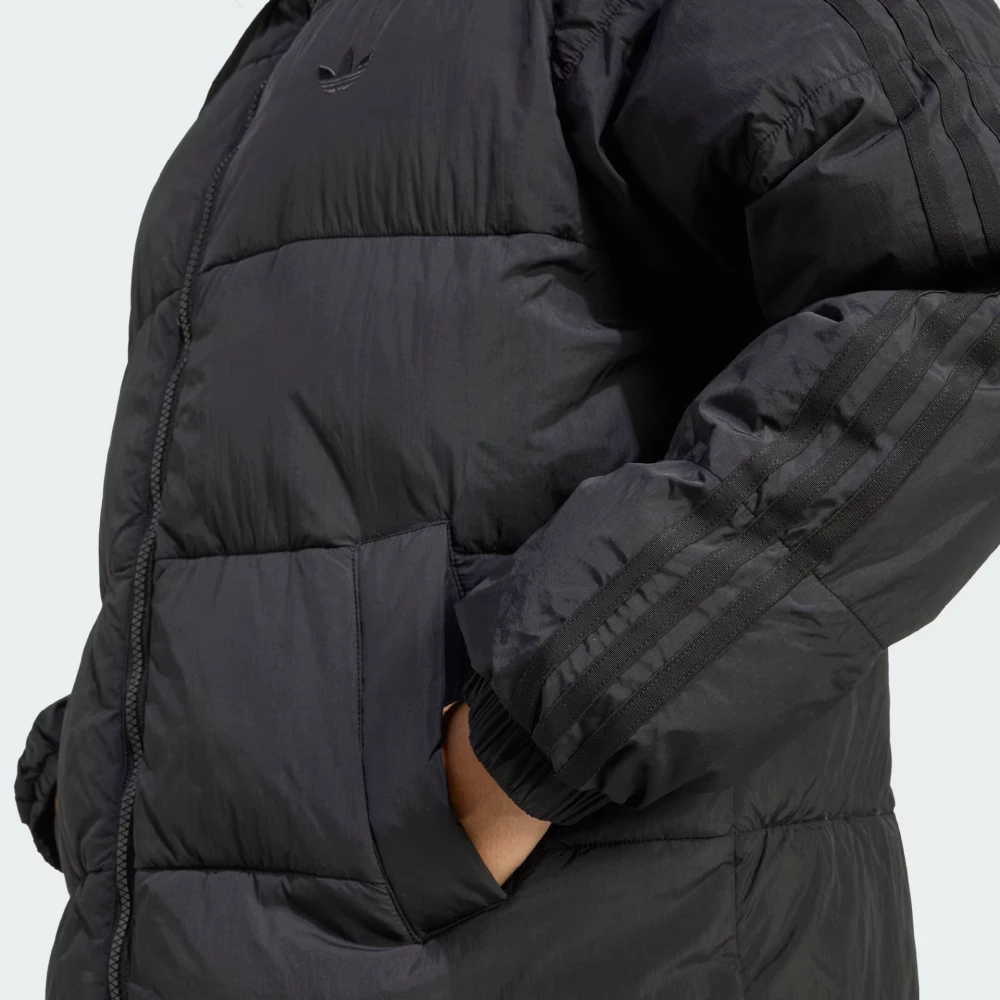 Колекція Adidas Originals створена для тих, хто не боїться виділятися, хто впевнено крокує вулицями мегаполіса та цінує бездоганний стиль у кожній деталі. Куртка Adidas Originals Long Puffer поєднує максимальний комфорт із легендарним стилем бренду, зберігаючи легкість і свободу рухів, навіть коли за вікном панує справжня зима. Міцна тканина та синтетичний утеплювач високої якості зберігають приємне тепло без зайвого об’єму. Подовжений вільний крій дарує відчуття затишку й дозволяє виглядати стильно у будь-яких умовах, а високий комір надійно прикриє від холодних поривів вітру. Бічні кишені створені для комфорту, адже у них зручно зігріти руки або сховати потрібні дрібнички, щоб усе необхідне завжди було поруч. Завершують образ культові три смужки на рукавах і лаконічний логотип Trefoil, які підкреслюють справжній дух Adidas Originals — поєднання автентичності, впевненості та непідвладного часу стилю. Adidas піклується про зниження впливу на довкілля, тому модель виготовлено з використанням перероблених матеріалів.