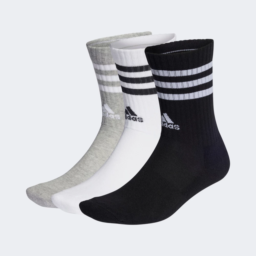 Набір шкарпеток Adidas 3s C Spw Crw 3p складається з трьох пар різного кольору. Вони виготовлені з комбінованого матеріалу, що забезпечуватиме комфорт під час носіння, а також стійкість до швидких ознак зношування. На носку та п'яті шкарпеток використано щільніший матеріал, який спеціально розроблений для додаткової амортизації. Шкарпетки класичної довжини до середини литок надаватимуть підтримку склепіння стопи, тому Ви зможете впевнено займатись своїми справами. Вони декоровані культовими трьома смужками, які дозволять продемонструвати усім Вашу прихильність до спортивного стилю бренду. Adidas піклується про зниження впливу на довкілля, тому матеріал виробу щонайменше на 70% є сумішшю перероблених і відновлюваних матеріалів.