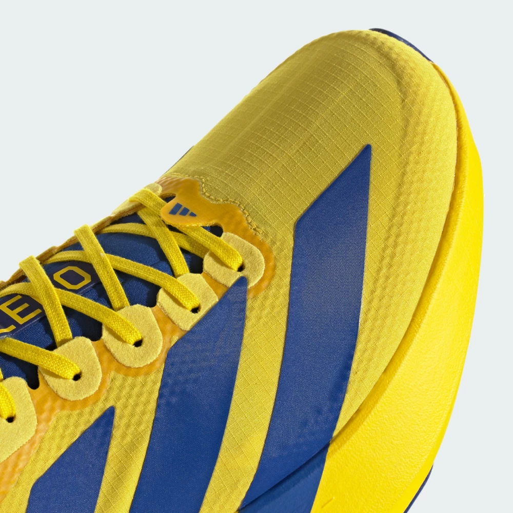 Колекція Adidas Performance зосереджена на створенні високоякісного спортивного одягу та взуття, призначених для досягнення максимальних результатів у спорті. Кросівки Adidas Adizero Evo Sl Woven M створені для тих, хто не рахує кроки — а підкорює дистанції. Вони втілюють швидкість і амбіції, натхненні легендарною лінійкою Adizero, символом перемог і рекордів. Легкий верх із текстилю та синтетики дарує відчуття комфорту навіть під час найінтенсивніших пробіжок. Надійна шнурівка щільно фіксує стопу, щоб Ви могли повністю зосередитися на ритмі. Проміжна підошва з технологією Lightstrike Pro поглинає ударні навантаження та повертає енергію у відповідь, тож кожен крок стає поштовхом вперед. Гумова підметка з накладкою Continental™ забезпечує зчеплення на будь-якій поверхні, тому Ви впевнено тримаєте темп на міських тротуарах чи паркових доріжках. Насичений жовтий колір із синіми акцентами та культовими трьома смужками додають яскравої енергії кожному образу, підкреслюючи спортивну харизму та рішучість долати будь-які дистанції.