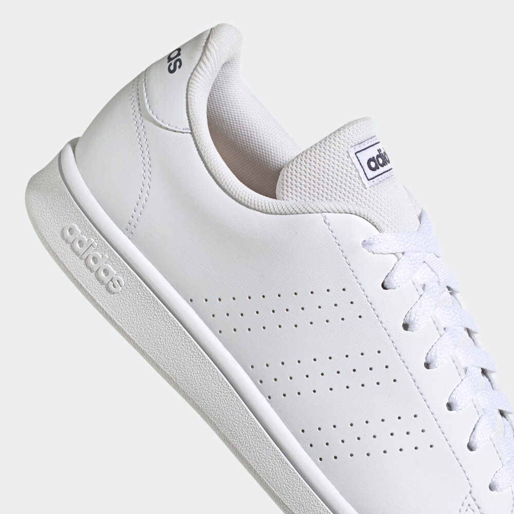 Колекція Adidas Sportswear змішує спорт і стиль, в ній новітні розробки поєднуються з естетичним зовнішнім виглядом, комфортом та універсальністю. Товари з даної колекції є ідеальним варіантом для повсякденного використання. Кеди Adidas Advantage Base створені у ретро стилі тенісних моделей. Їх верх виготовлено зі штучної шкіри, яка поєднує міцність і м'якість, забезпечуючи зручну посадку на нозі. Проміжна підошва забезпечує амортизацію і легкість на кожному кроці, а також допомагає зменшити навантаження на стопу. Гумова підошва гарантує гарне зчеплення, що додає стабільності під час ходьби. Перфоровані три смужки не лише підкреслюють дизайн, а й забезпечують циркуляцію повітря. Adidas піклується про зниження впливу на довкілля, тому матеріал верху кедів містить 50% перероблених волокон, що є лише одним з рішень, які допомагають покласти край пластиковим відходам.