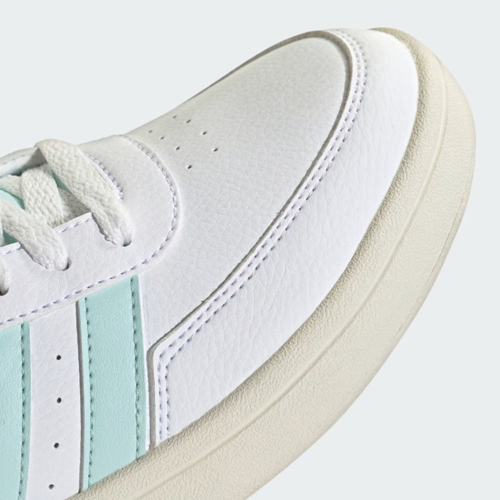 Колекція Adidas Sportswear поєднує в собі стиль та комфорт, створюючи ідеальні вироби для повсякденного носіння та активного способу життя. Кеди Adidas Breaknet 2.0 — це тенісна класика, яка вирвалася за межі кортів і впевнено крокує вулицями міста. Вони для тих, хто цінує чисті лінії та стриманий стиль у повсякденних образах. Верх із гладкого синтетичного матеріалу з перфорацією виглядає елегантно, забезпечуючи легку циркуляцію повітря у вирі міської метушні. Класична шнурівка надасть надійну фіксацію, а м’яка підкладка огорне Ваші ноги комфортом з першого кроку. Плоска гумова підошва гарантує відмінне зчеплення, тож Ви можете легко маневрувати між справами, не втрачаючи темпу. Білий колір із ніжними м'ятними акцентами додасть свіжості образам, а культові смужки та логотип підкреслять Вашу відданість стилю Adidas.