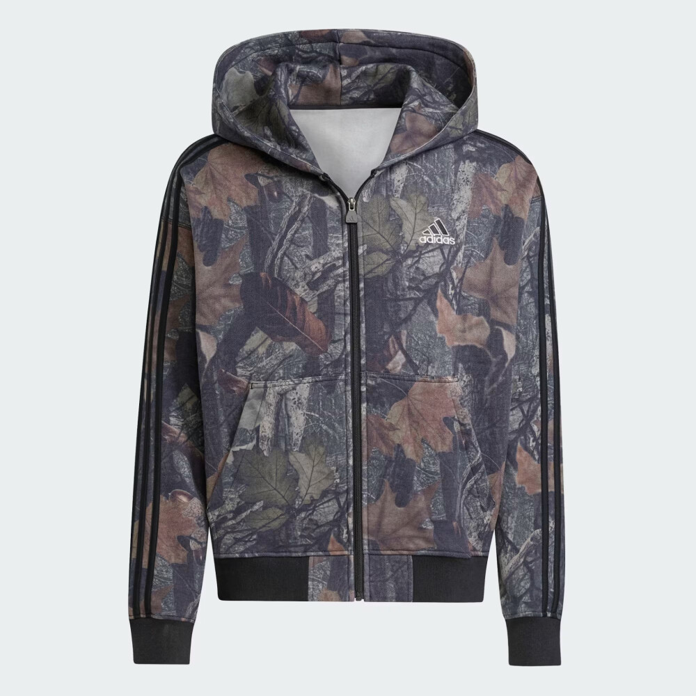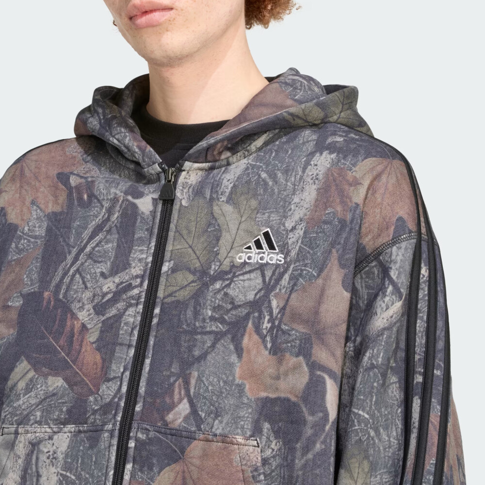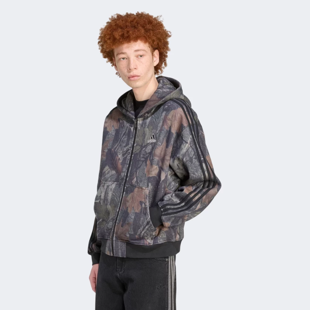 Колекція Adidas Originals створена для тих, хто не боїться виділятися, хто впевнено крокує вулицями мегаполіса та цінує бездоганний стиль у кожній деталі. Кофта Adidas Originals Camo Fz створена для активних людей, які цінують стиль і свободу рухів. Вона поєднує комфорт, функціональність та ефектний дизайн, що не залишить байдужим. М’який та приємний на дотик фліс дарує тепло у прохолодні дні, щоб жодна погода не зупиняла на шляху до нових пригод. Вільний крій зі спущеними плечовими швами створює розслаблений силует і дарує повну свободу рухів. Зручна блискавка на всю довжину дозволяє легко змінювати образ залежно від настрою чи погоди. Капюшон надійно захистить від вітру та несподіваного дощу, а бічні кишені стануть сховком для важливих речей — смартфона, навушників чи дрібних аксесуарів. Суцільний камуфляжний принт з мотивами осіннього лісу додає образу динамічності та унікальності, а легендарні три смужки та логотип Adidas підкреслюють прихильність до спортивного стилю, який завжди актуальний. Adidas піклується про зниження впливу на довкілля, тому модель виготовлено з використанням перероблених матеріалів.