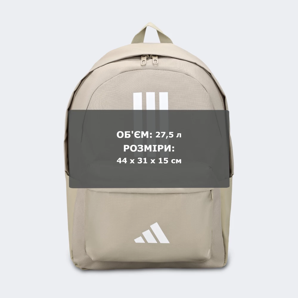 Рюкзак Adidas Clsc Bars 3s створений для тих, хто живе у русі й хоче виглядати впевнено щодня. Він органічно доповнює повсякденний образ і легко підлаштовується під Ваш ритм — навчання, роботу, прогулянки містом чи спонтанні подорожі. Міцний матеріал витримає активне використання й не потребує складного догляду, тому забруднення достатньо протерти вологою тканиною. Просторе основне відділення без зусиль вмістить зошити чи спортивну форму, а передня кишеня на блискавці дозволяє тримати важливі дрібниці завжди під рукою. Бічні кишені зручно розмістять пляшку з водою або парасольку, щоб Ви завжди були готові до будь-яких пригод. М’які регульовані ремені дарують комфорт навіть у найдинамічніші дні, не перевантажуючи плечі. Витончені логотипи та культові три смужки підкреслять Вашу любов до активного життя й бездоганного спортивного стилю. Adidas піклується про зниження впливу на довкілля, тому модель виготовлено з використанням перероблених матеріалів.