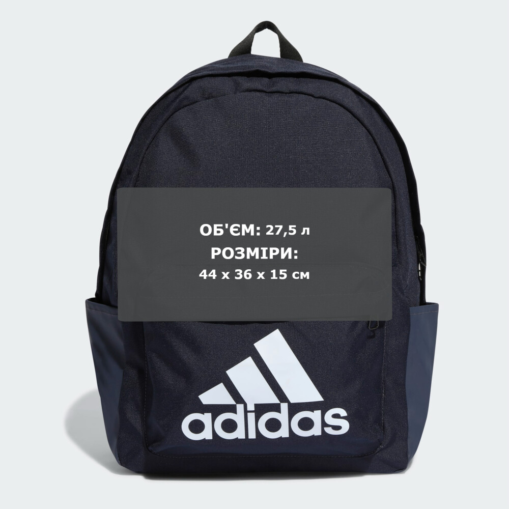 Колекція Adidas Sportswear змішує спорт і стиль, в ній новітні розробки поєднуються з естетичним зовнішнім виглядом, комфортом та універсальністю. Рюкзак Adidas Clsc Bos Bp відтворює класичний дизайн бренду та стане практичним завершенням Ваших образів. Він виготовлений з якісного матеріалу, який є легким у догляді, оскільки забруднення достатньо протерти вологою тканиною. Рюкзак має основне відділення з кишенею та передню кишеню на блискавці, що дозволить впорядкувати потрібні Вам речі як для прогулянок і походів у справах, так і для тренувань. Бічні кишені вмістять пляшку з водою, що дозволить швидко втамувати спрагу. Плечові ремені регулюються та гарантують комфортне перенесення. Рюкзак декоровано великим логотипом Badge of Sport. Adidas піклується про зниження впливу на довкілля, тому матеріал виробу містить перероблені волокна.