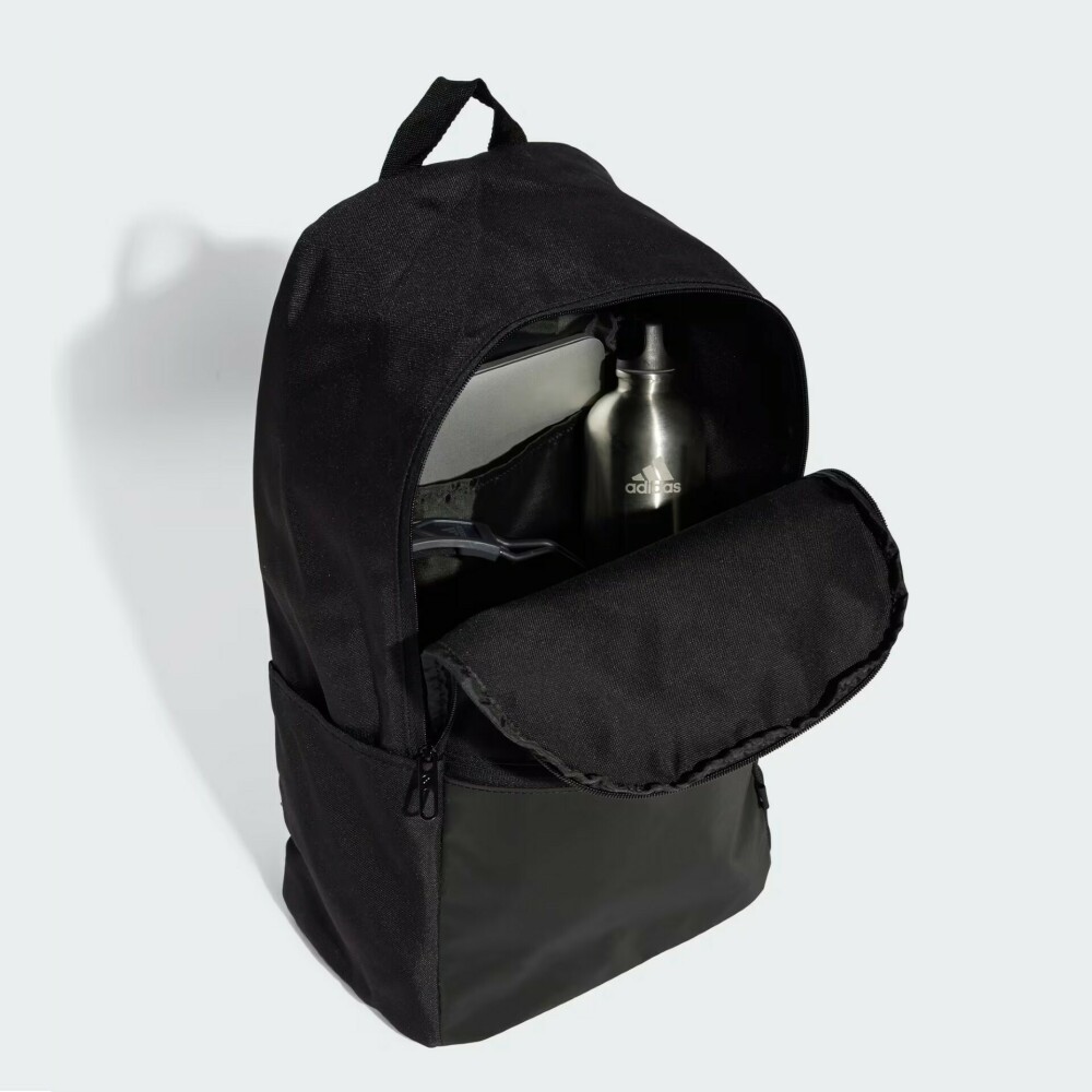 Рюкзак Adidas Clsc Bp Day стане Вашим незамінним супутником у повсякденних пригодах, оскільки зробить Вас готовими до будь-яких викликів. Він виготовлений з міцного матеріалу, який витримуватиме щоденні виклики та є легким у догляді, адже забруднення достатньо протерти вологою тканиною. Просторе основне відділення, внутрішня кишеня і зручна зовнішня кишеня для дрібниць дозволятимуть тримати всі Ваші речі впорядкованими та завжди під рукою. Бічні кишені вмістять пляшку з водою, тому Ви зможете вгамувати спрагу навіть під час активного руху. Регульовані плечові ремені забезпечуватимуть комфорт навіть при тривалому носінні. Рюкзак декоровано контрастним написом, який підкреслюватиме Вашу відданість спортивному стилю бренду. Adidas піклується про зниження впливу на довкілля, тому матеріал містить щонайменше 50% перероблених волокон.