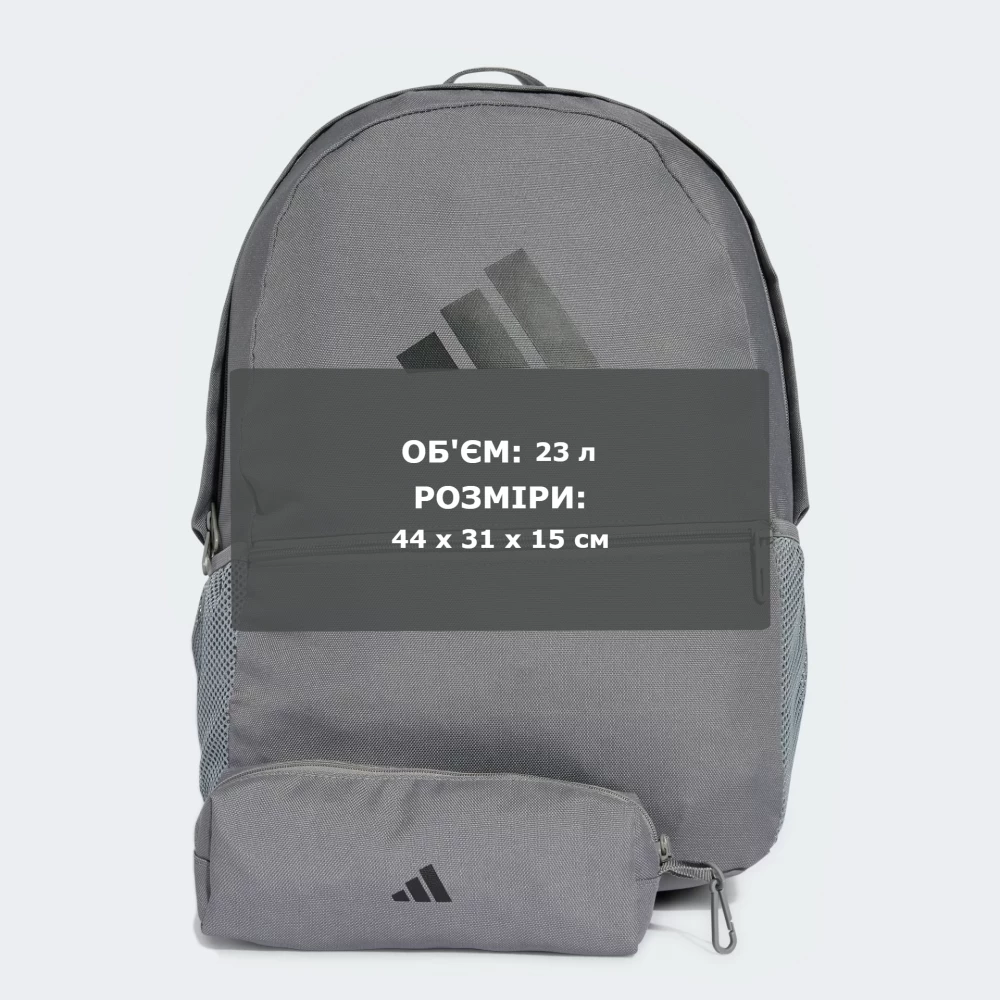 Рюкзак Adidas Clsc Pcase Bp допоможе Вам залишатися організованими та впевненими протягом усього дня. Він чудово підійде як для навчання, так і для повсякденних пригод — від динамічного ранку до вечірніх планів. Рюкзак виготовлений із міцного синтетичного матеріалу, який не боїться щоденного використання та легко очищується — забруднення достатньо протерти вологою тканиною. Просторе основне відділення вмістить книги, змінний одяг чи інші речі, які потрібні впродовж дня. Передня кишеня на блискавці дозволяє тримати дрібниці — картку, ключі, навушники — завжди під рукою, а сітчасті бічні кишені стануть зручним місцем для пляшки з водою. У комплекті — зручний пенал, який легко вмістить усі необхідні канцтовари або стане органайзером для аксесуарів, які завжди хочеться мати впорядкованими. М’які регульовані плечові ремені гарантують комфортне перенесення, навіть якщо рюкзак повністю заповнений. А логотип Adidas надає впізнаваного спортивного характеру й підкреслює Вашу активність, стиль і рішучість бути готовими до всього. Adidas піклується про зниження впливу на довкілля, тому модель виготовлено з використанням перероблених матеріалів.