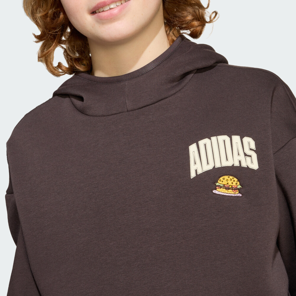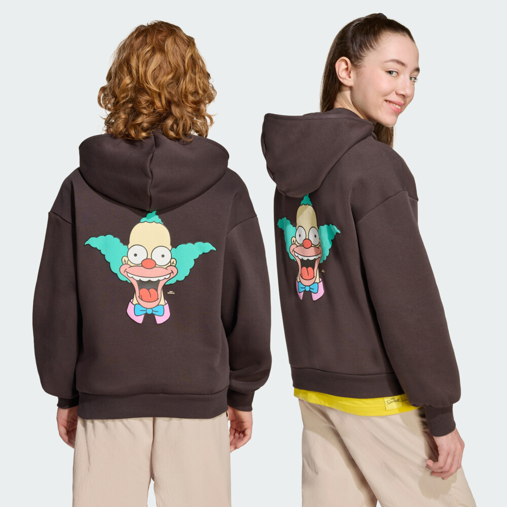 Кофта Adidas J Sim Hd миттєво переносить у світ яскравих емоцій та культових моментів мультсеріалу "Сімпсони", наповнюючи кожен день настроєм улюбленого шоу. Вона виготовлена з м’якого, приємного на дотик флісу, який дбайливо огортає теплом у прохолодну погоду. Вільний крій зі спущеними плечовими швами створює модний силует і забезпечує повну свободу рухів для активного підліткового ритму. Манжети на рукавах і по низу додають охайності й створюють акуратний, завершений вигляд. Капюшон стане надійним захистом у разі несподіваного вітру чи дощу. Кишеня-кенгуру — це не лише тепло для рук, а й зручне місце для корисних дрібниць. Графіка Adidas, вишивка «Красті Бургер» спереду та барвистий принт із Клоуном Красті на спині підкреслюють індивідуальність підлітка, демонструючи його почуття гумору й любов до легендарного телешоу. Модель рекомендована для дітей віком від 8 до 16 років.