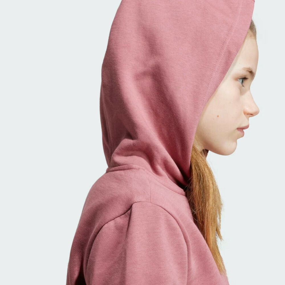 Колекція Adidas Sportswear змішує спорт і стиль, в ній новітні розробки поєднуються з естетичним зовнішнім виглядом, комфортом та універсальністю. Товари колекції є ідеальним варіантом для тих, хто хоче мати гарний вигляд та почуватись вільно. Кофта Adidas J Sl Fc Fl Hd виготовлена з м'якої флісової тканини, яка гарантуватиме відчуття тепла та затишку протягом усього дня. Класичний крій з манжетами на рукавах й по низу кофти надаватиме приємну посадку, не сковуючи при цьому дитячих рухів. Капюшон сприятиме захисту від несприятливих проявів погоди, а кишеня кенгуру дозволить мати при собі корисні дрібнички та при потребі зігріти руки. Мінімалістичний дизайн кофти доповнено невеликим логотипом, який демонструватиме прихильність юного модника до стилю бренду. Модель рекомендована для дітей віком від 8 до 16 років. Adidas піклується про зниження впливу на довкілля, тому матеріал виробу щонайменше на 70% є сумішшю перероблених і відновлюваних матеріалів, що є лише одним з рішень, які допомагають покласти край пластиковим відходам.