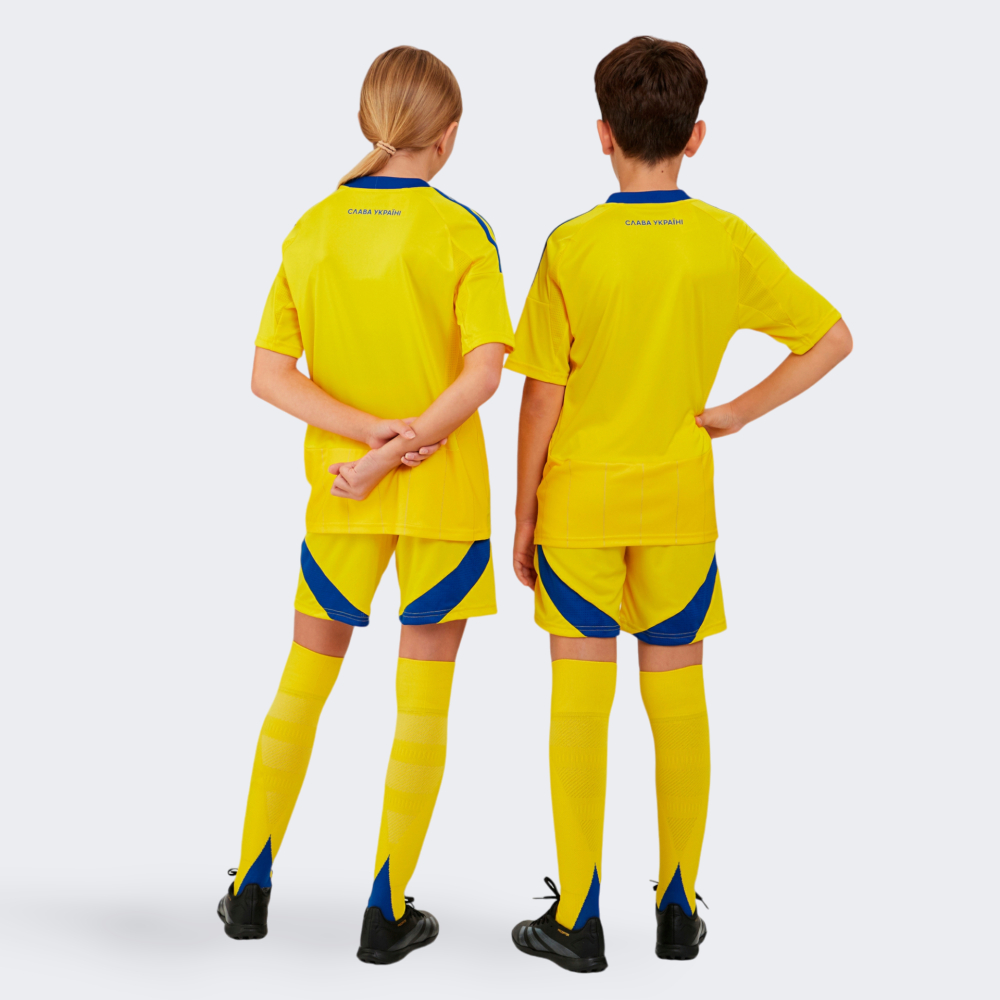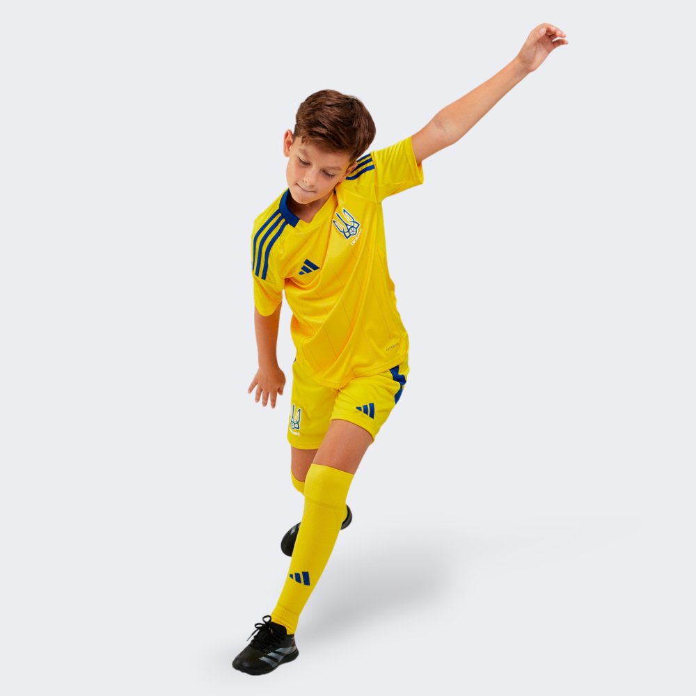 Adidas та Українська асоціація футболу (УАФ) оголосили про початок співпраці, представивши нові комплекти домашньої та виїзної форми збірних України на сезон 2024/2025. Форма вшановує зв’язок між українською культурою та футболом, що робить її важливим атрибутом кожного вболівальника. Шорти Adidas cuLIC24 Sho відтворюють дизайн домашньої форми збірної України та дозволять юному футболісту відчути нестримне прагнення до перемоги. Вони виготовлені з легкої тканини, яка відводитиме піт та зайву вологу від тіла, даруючи відчуття сухості та комфорту незалежно від навантажень. Класичний крій оптимальної довжини надаватиме повний діапазон рухів, дозволяючи з легкістю долати нові виклики. Еластичний пояс забезпечуватиме надійну фіксацію на талії, щоб дитина могла зосередитись на своїх досягненнях. Шорти декоровані логотипом Adidas і емблемою УАФ, що надаватиме Вашій дитині можливість стати частиною українського футболу. Модель рекомендована для дітей віком від 8 до 16 років. Adidas піклується про зниження впливу на довкілля, тому виріб виготовлено зі 100% перероблених матеріалів.