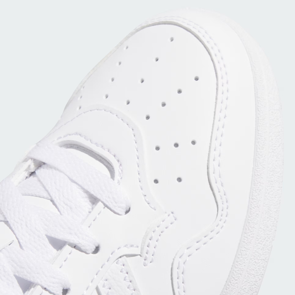 Колекція Adidas Sportswear поєднує в собі стиль та комфорт, створюючи ідеальні вироби для повсякденного носіння та активного способу життя. Кеди Adidas Hoops 4.0 J — це справжній маніфест стилю та впевненості, натхненний легендами баскетбольних майданчиків. Вони гармонійно поєднують у собі дух великої гри та комфорт щоденного носіння. Верх зі зносостійких синтетичних матеріалів не лише виглядає стильно, але й відмінно витримує активне використання. Перфорація в передній частині сприяє ефективній вентиляції, підтримуючи комфортний мікроклімат протягом усього дня — на прогулянці, у школі або під час дозвілля. Класична шнурівка забезпечує надійну фіксацію стопи, дозволяючи рухатися впевнено у будь-якому темпі. Гумова підошва дарує відмінне зчеплення з різними поверхнями, додаючи стабільності кожному кроку. Легендарні три смужки та логотип Adidas виражають спортивний характер, відданість стилю та пристрасть до руху. Кеди стануть незамінною парою у гардеробі юного модника чи модниці, яка підкреслить індивідуальність і стане надійним супутником у шкільних буднях, на прогулянках або у вуличних пригодах. Модель рекомендована для дітей віком від 8 до 16 років.