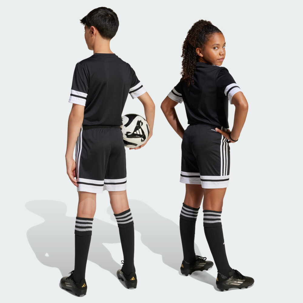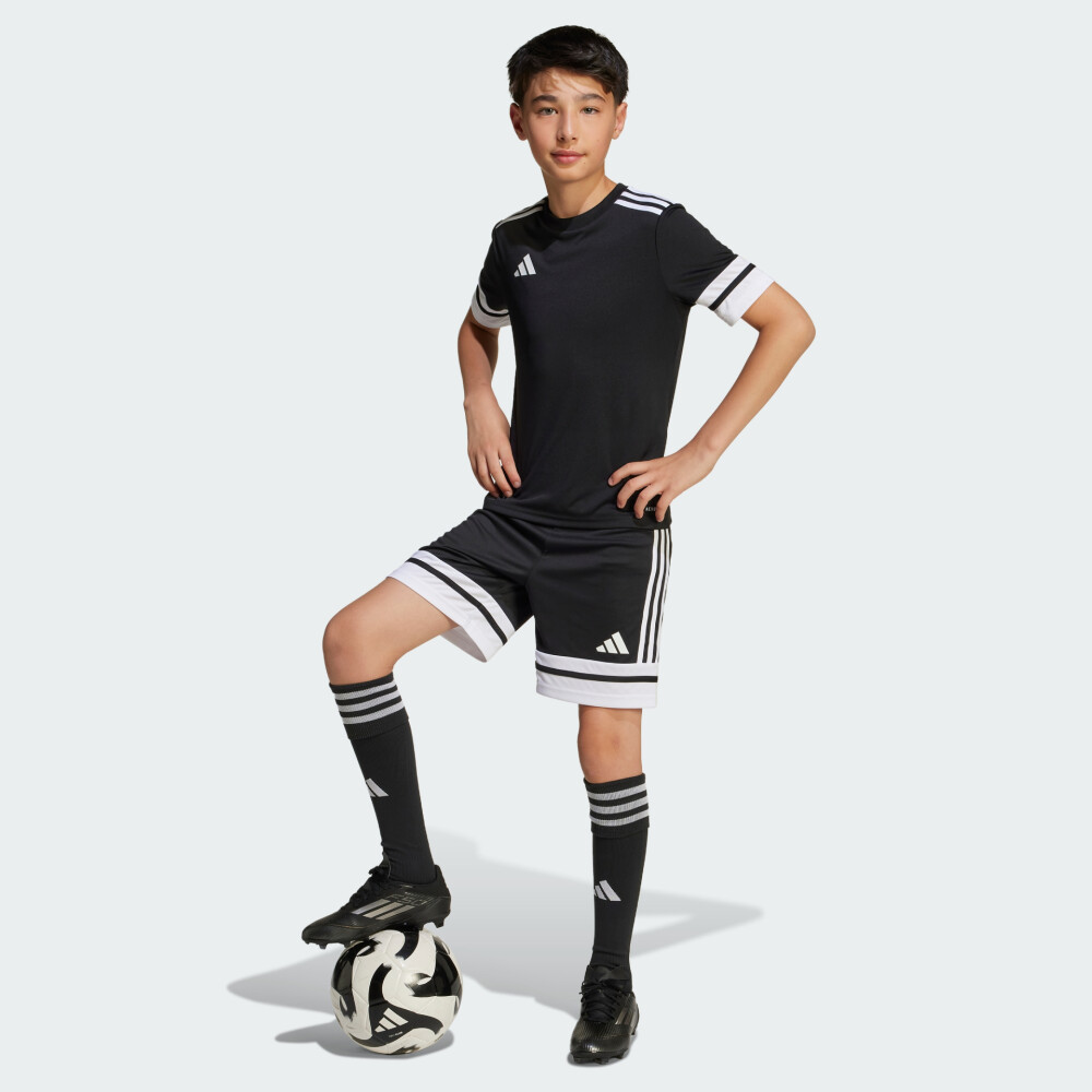 Колекція Adidas Performance зосереджена на створенні високоякісного спортивного одягу та взуття, призначених для досягнення максимальних результатів у спорті. Шорти Adidas Squa25 Sho Y заряджені енергією великого футболу й створені для тих, хто мріє про гру на великих аренах. Вони надихають юних спортсменів виходити на поле з упевненістю та показувати найкращий результат — на тренуваннях, у товариських матчах чи на змаганнях. Модель виготовлена з високотехнологічної тканини з волого відвідними властивостями, яка активно бореться з потом і забезпечує відчуття сухості навіть під час напружених ігрових моментів. Класичний крій оптимальної довжини гарантує свободу дій, тому підкати, ривки, паси чи удари в поворотах виконуватимуться впевнено й легко. А еластичний пояс забезпечує надійну посадку, завдяки чому шорти залишаються на місці навіть при найактивнішому русі. Контрастні вставки та культовий логотип Adidas надають образу динаміки, а також підкреслюють зв’язок з професійною грою та легендарною спадщиною бренду. Модель рекомендована для дітей віком від 8 до 16 років — для тих, хто живе грою, тренується з пристрастю та мріє стати зіркою на полі. Adidas піклується про зниження впливу на довкілля, тому модель виготовлено з використанням перероблених матеріалів.