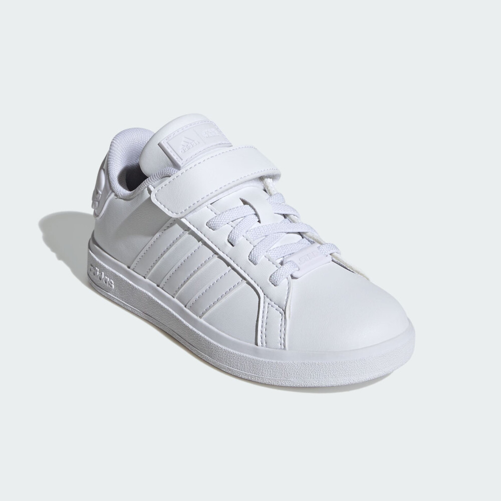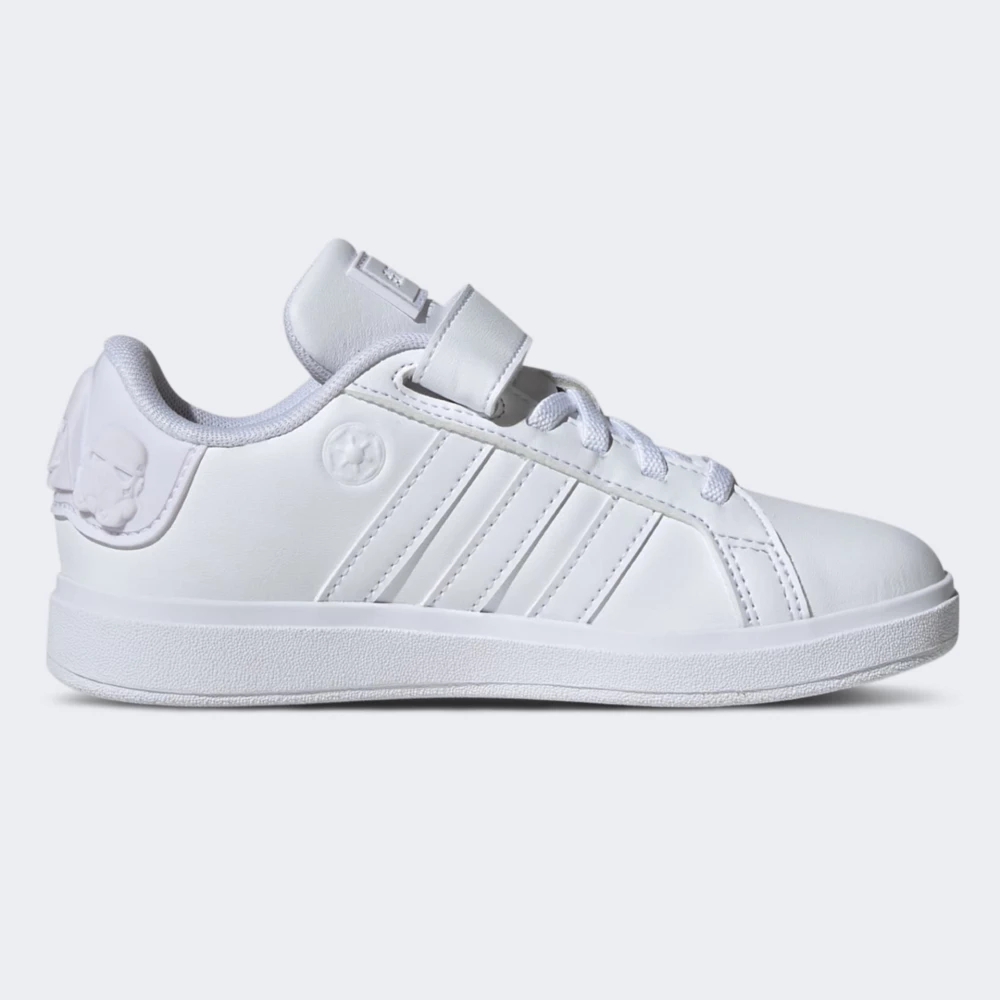 Лінійка Adidas x Star Wars - це не просто речі, а ціла подорож у галактику пригод, стилю та безмежних можливостей. Вона дозволить стати головним героєм великої історії. Кеди Adidas Star Wars Grand Court K зроблять маленького прихильника Зоряних війн готовим до будь-яких пригод. Їх верх виготовлено з синтетичних матеріалів, які у поєднанні з текстильною підкладкою забезпечуватимуть комфортні відчуття протягом усього дня. Еластична шнурівка доповнена липучкою, що дозволить дитині самостійно та швидко взуватись на прогулянки. Гумова підошва сприятиме зчепленню з поверхнями та покращуватиме стійкість, тому дитина зможе впевнено вирушати у пошуках нових пригод. Кеди декоровані графікою Зоряних війн на п'яті. Модель рекомендована для дітей віком від 4 до 8 років. Adidas піклується про зниження впливу на довкілля, тому модель щонайменше на 20% виготовлена з перероблених матеріалів.