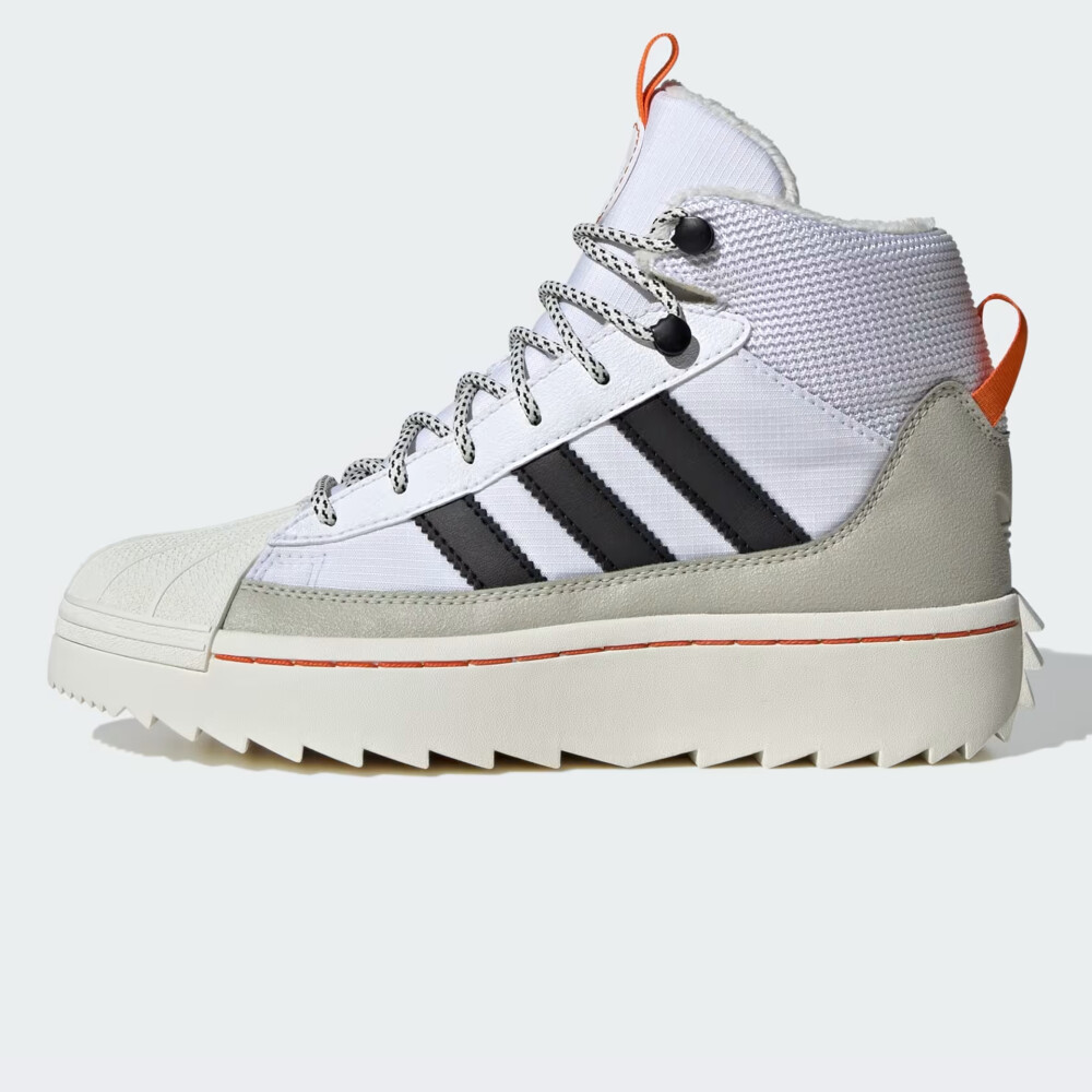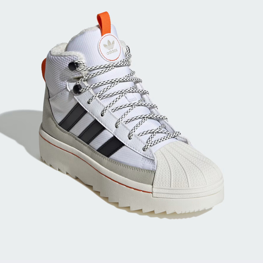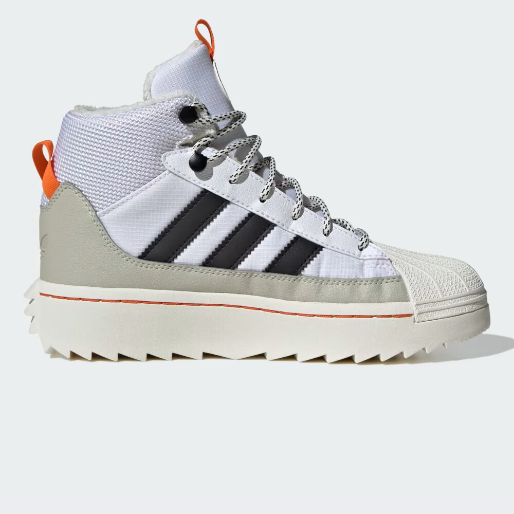 Колекція Adidas Originals заснована на використанні у виробництві найкращих матеріалів та практичних фасонів. Товари колекції створені для сміливих, впевнених у собі, та тих хто цінує максимальний комфорт у повсякденному житті. Черевики Adidas Originals Superstar Winter Tr K – ідеальний вибір для тих підлітків, які цінують комфорт та стиль у холодну пору року. Їх верх виготовлено з нейлону зі вставками з синтетичної замші, що у поєднанні з водонепроникними властивостями забезпечуватиме сухість під час дощу та снігу. Утеплена текстильна підкладка надаватиме тепло протягом усієї прогулянки. Завищена конструкція зі щільною шнурівкою фіксуватиме гомілкостоп та разом з посиленим носком запобігатиме травмам під час активного руху. Міцна гумова підошва з протектором надаватиме зчеплення з поверхнями, тому Ваша дитина зможе впевнено крокувати засніженими міськими тротуарами. Універсальний дизайн черевиків доповнений легендарними трьома смужками на боковій частині та легко комбінується з різними зимовими образами. Модель рекомендована для дітей віком від 8 до 16 років. Adidas піклується про зниження впливу на довкілля, тому модель щонайменше на 20% виготовлено з перероблених матеріалів.