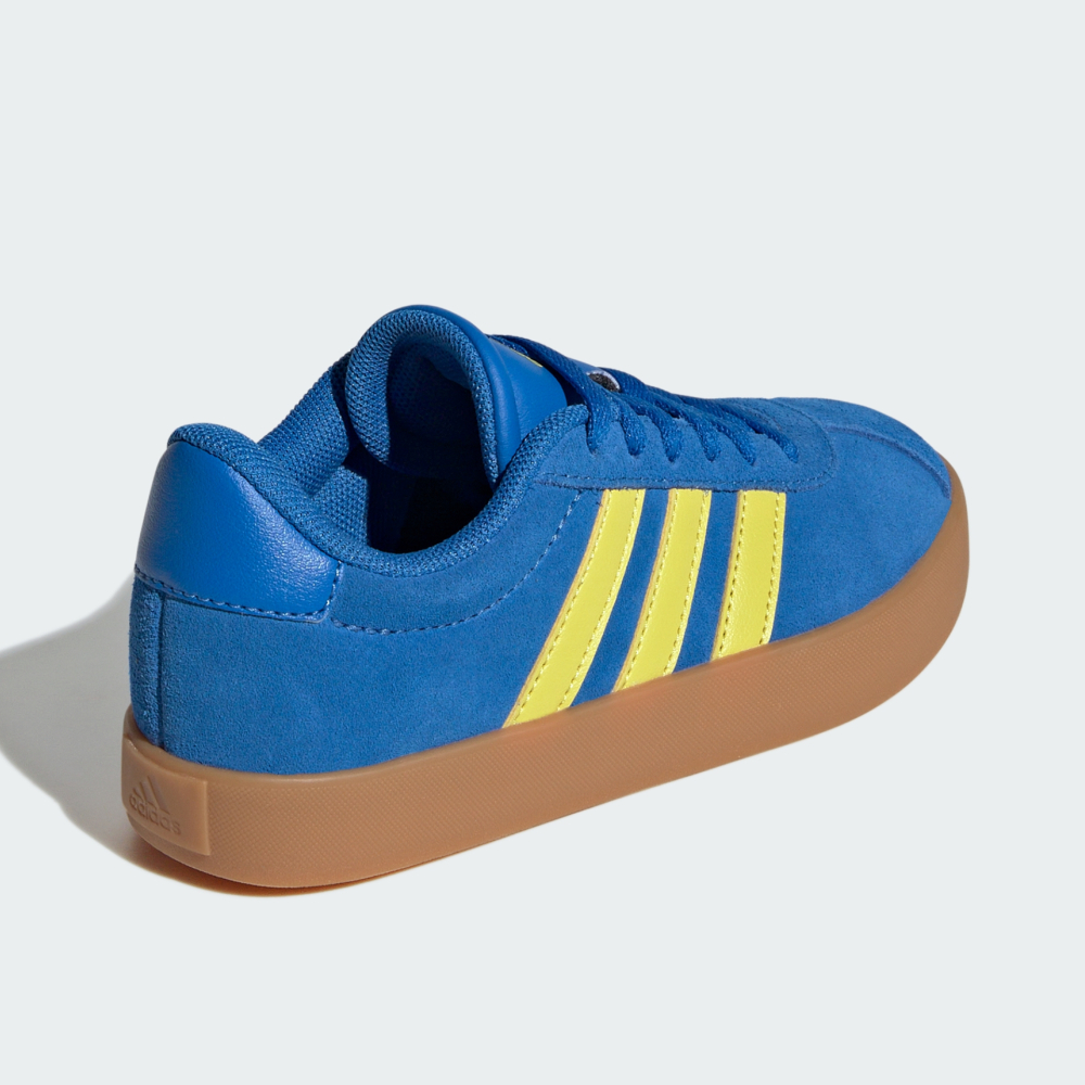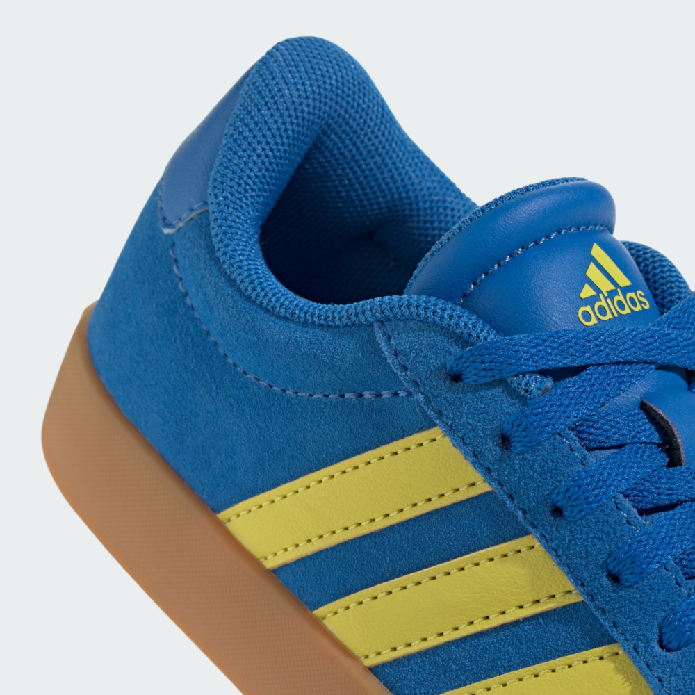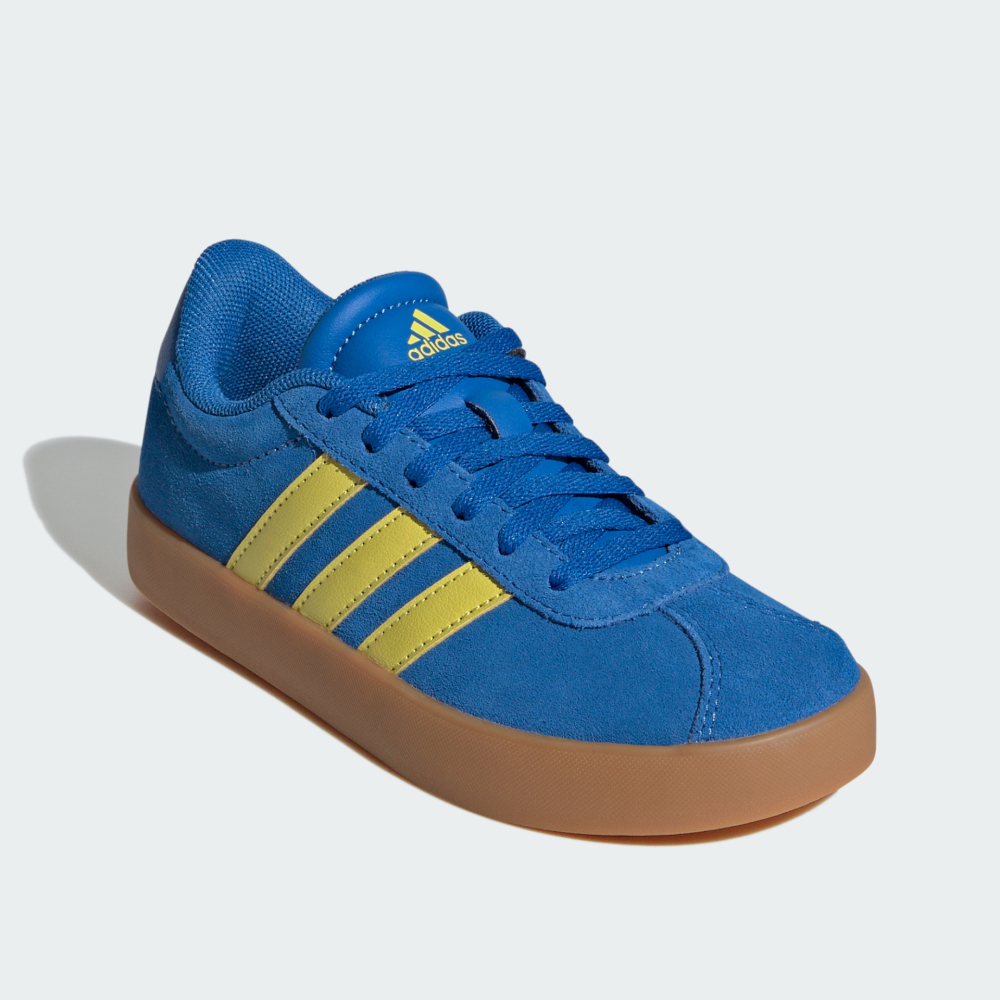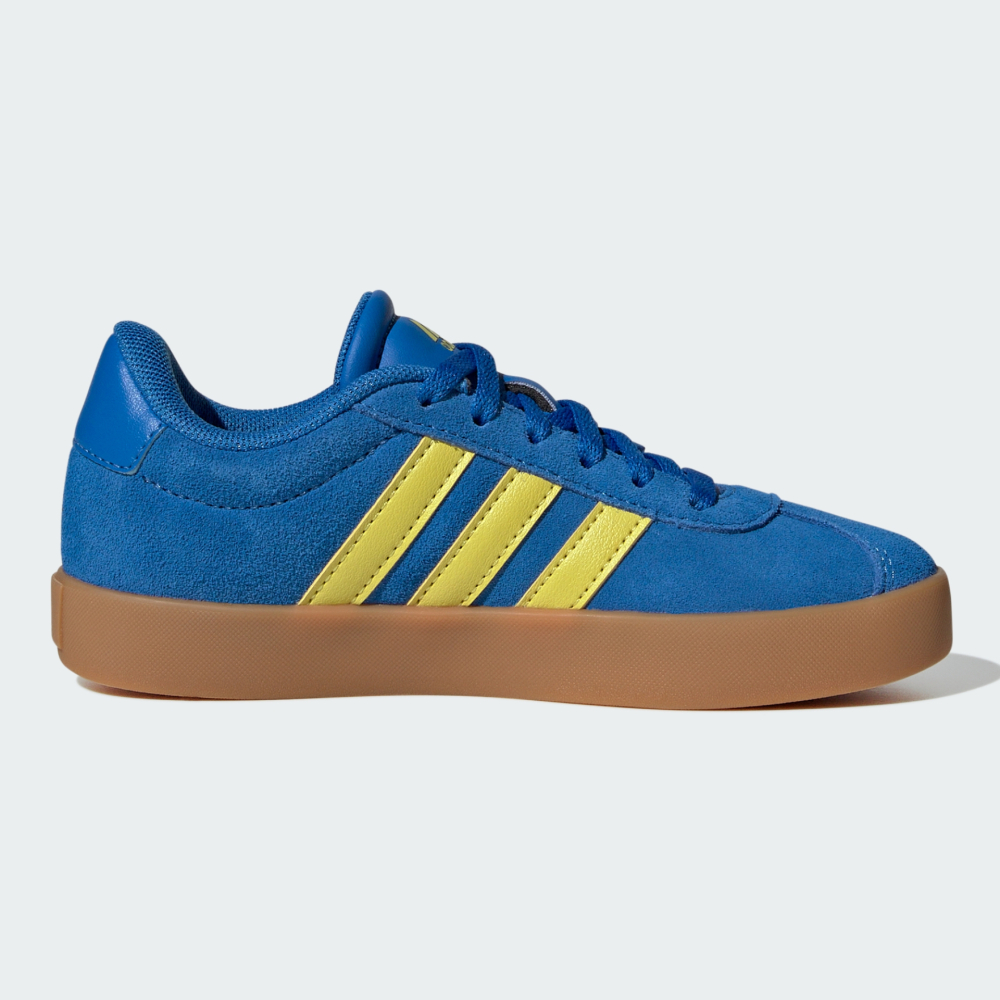 Колекція Adidas Sportswear поєднує в собі стиль та комфорт, створюючи ідеальні вироби для повсякденного носіння та активного способу життя. Кеди Adidas Vl Court 3.0 K відтворюють вуличний стиль, який завжди в тренді. Натхненні атмосферою скейт-парку, вони допоможуть юному моднику виразити себе в кожному кроці. Замшевий верх у поєднанні з м’якою текстильною підкладкою забезпечуватиме комфорт протягом усього дня — у школі чи на прогулянці. Класична шнурівка надійно фіксуватиме стопу, дозволяючи впевнено рухатися у власному ритмі. Вулканізована гумова підошва надаватиме необхідне зчеплення з поверхнями, роблячи при цьому модель досить стійкою до швидких ознак зношування. Насичений синій колір із жовтими акцентами додаватиме яскравості образам, а легендарні три смужки Adidas підкреслюватимуть улюблений вуличний стиль юного модника. Модель рекомендована для дітей віком від 8 до 16 років.