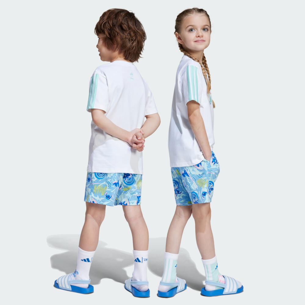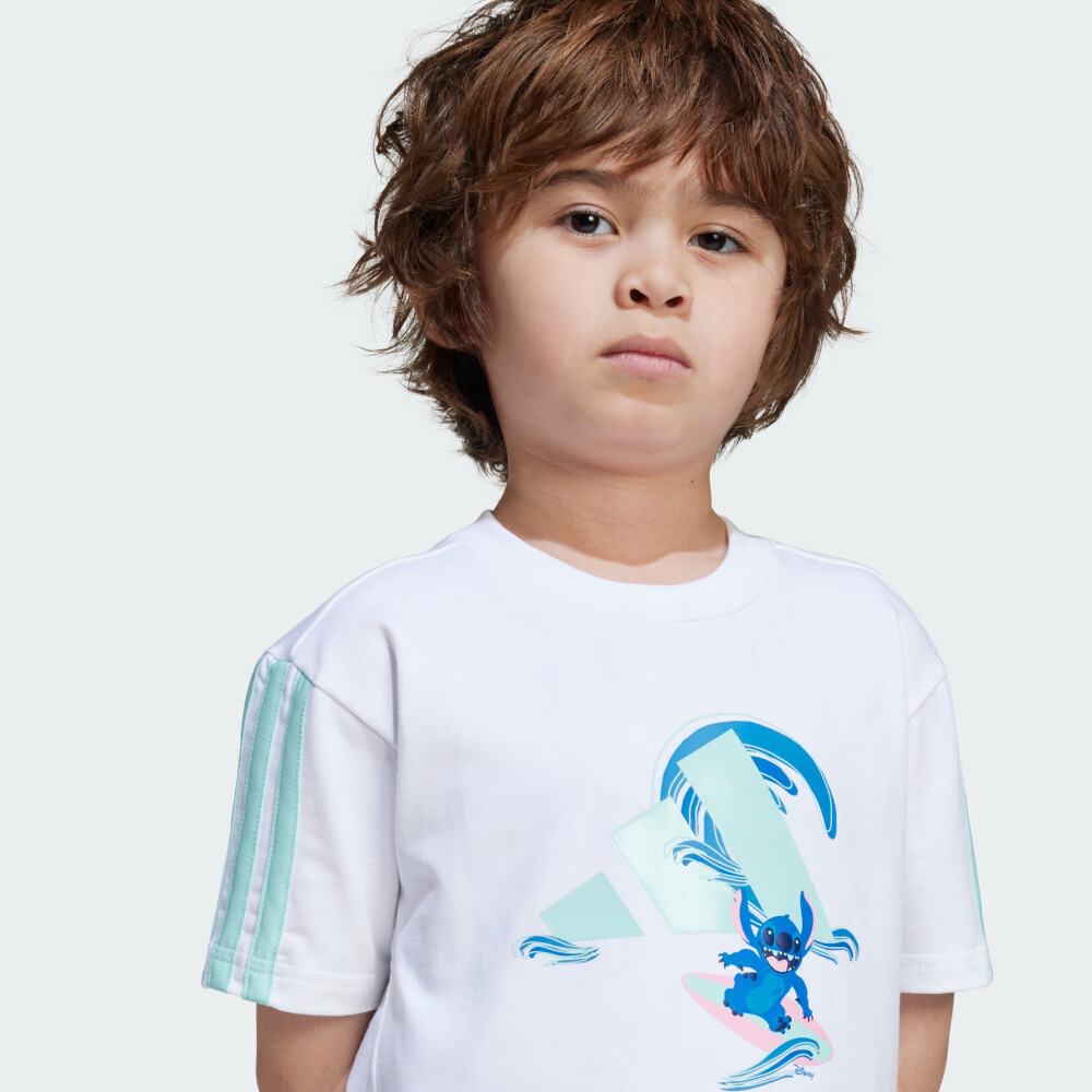 Лінійка Adidas x Disney Lilo and Stitch створена, щоб подарувати дитині не лише комфорт і свободу рухів, а й відчуття магії, радості та безмежної фантазії. Вона надихає на нові відкриття та допомагає кожному малюку відчути себе справжнім героєм захопливої пригоди. Спортивний костюм Adidas Lk Dy LS T Set — це запрошення у яскравий світ пригод разом з улюбленим героєм Disney — чарівним Стічем. Еластична, приємна до тіла бавовняна тканина огортає ніжністю та забезпечує комфорт протягом усього дня — під час активних прогулянок, ігор з друзями чи затишних моментів удома. Прямий крій не сковує рухів, дозволяючи дитині бути впевненою у кожному кроці. Футболка має зручний комір із м’якою внутрішньою стрічкою, тому запобігає подразненням навіть при тривалому носінні. Шорти з еластичним поясом та текстильним шнурком надійно фіксуються на талії, не тиснуть і не заважають рухатись. Зручні бічні кишені дозволяють дитині завжди мати при собі улюблені дрібнички. Яскрава графіка зі Стічем заряджає позитивом і додає образу казкової атмосфери, а логотип Adidas додає спортивного шарму. Модель рекомендована для дітей віком від 4 до 8 років — для тих, хто відкриває світ із широкою усмішкою та очима, сповненими мрій.