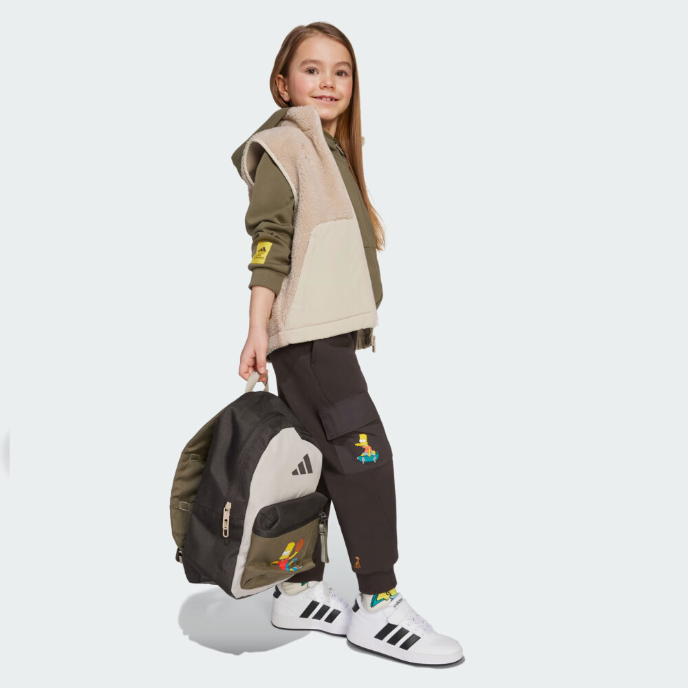 Рюкзак Adidas Lk Sim Bpk — це яскравий вибір для допитливих школярів, які хочуть поєднати комфорт з улюбленими героями. Міцний матеріал легко витримує будь-які виклики — від щоденних походів до школи до веселих ігор після уроків. А ще він невибагливий у догляді: забруднення достатньо протерти вологою тканиною — і рюкзак знову як новий. Просторе основне відділення вмістить усе необхідне: підручники, ланчбокс або навіть улюблену іграшку. Передня кишеня на блискавці стане надійним сховком для дрібничок, які завжди мають бути під рукою. Бічна сітчаста кишеня ідеально підійде для пляшки з водою, щоб дитина могла легко втамувати спрагу навіть під час гри. М’які регульовані лямки дбайливо розподіляють навантаження, забезпечуючи комфортне перенесення протягом усього дня. А яскравий принт із зображенням Барта Сімпсона додасть настрою та виразить індивідуальність дитини, яка любить гумор, драйв і стиль. Adidas піклується про зниження впливу на довкілля, тому модель виготовлено з використанням перероблених матеріалів.