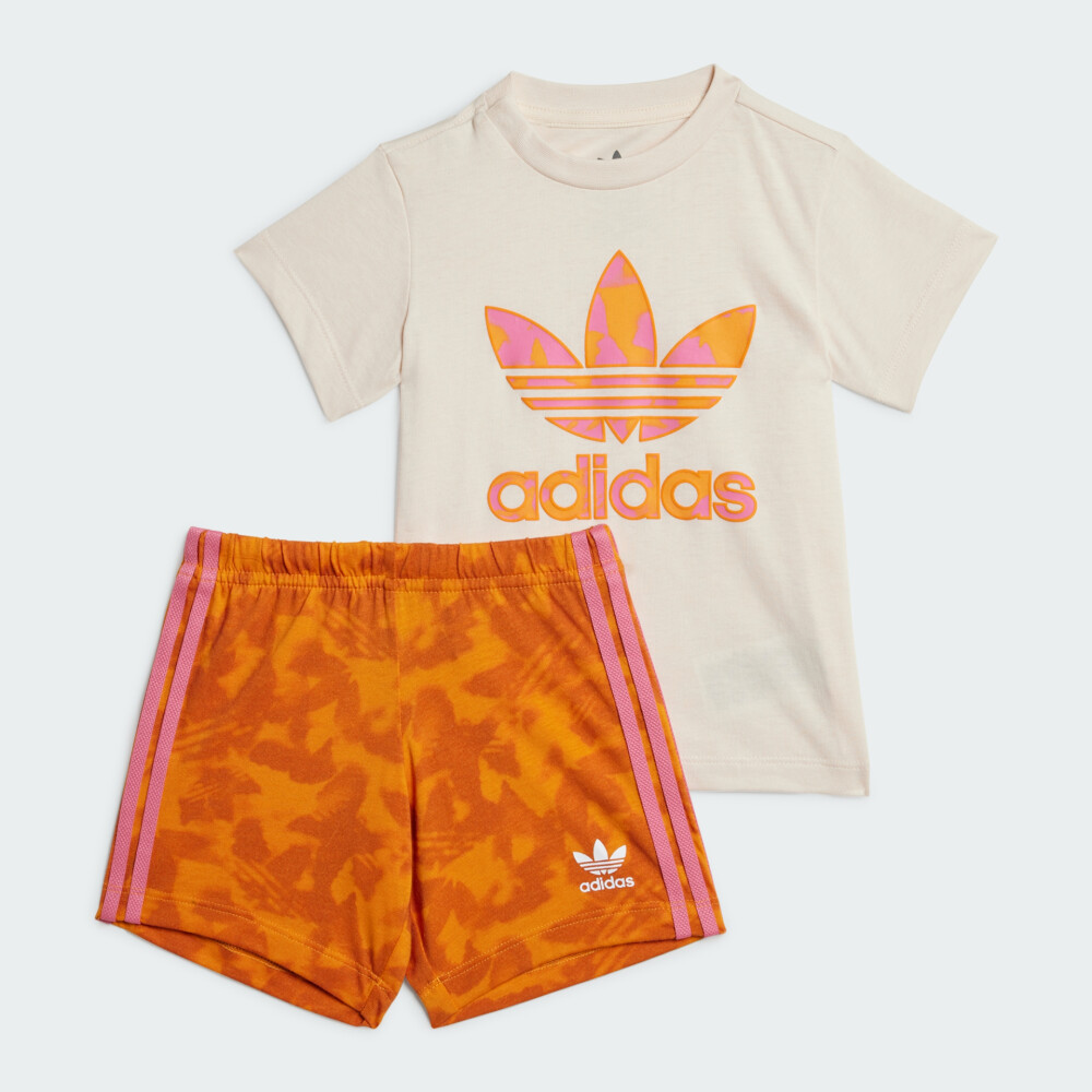Колекція Adidas Originals заснована на використанні у виробництві найкращих матеріалів та практичних фасонів. Спортивний костюм Adidas Originals Short Tee Set додасть сонячного настрою у літні образи Вашого малюка. Він виготовлений з якісної бавовняної тканини, яка є приємною до ніжної шкіри. Класичний крій костюма не сковуватиме дитячих рухів, тому дитина зможе впевнено досліджувати навколишній світ. Футболка має застібки на плечах, щоб її було зручно одягати. Шорти з еластичним поясом та шнурком гарантуватимуть надійну фіксацію. Костюм декоровано стильним принтом та логотипами, щоб продемонструвати спортивний стиль Вашого малюка. Модель рекомендована для малюків до 4 років. Adidas піклується про зниження впливу на довкілля, тому бавовна виготовлена по програмі Better Cotton Initiative, яка розвиває екологічне бавовництво.