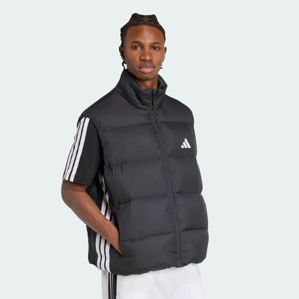 Колекція Adidas Sportswear поєднує в собі стиль та комфорт, створюючи ідеальні вироби для повсякденного носіння та активного способу життя. Куртка-жилет Adidas Ess 3s Puf D V стане Вашим надійним супутником у будь-яких активних пригодах навіть у прохолодну погоду. Водовідштовхувальне покриття та легкий пуховий утеплювач із технологією ClimaWarm дарують тепло й комфорт, щоб Ви могли зануритися у рух та справи дня. Вільний крій не обмежує Вашої свободи та сприяє багатошаровості, а блискавка по всій довжині дозволяє регулювати рівень затишку залежно від погоди. Зручні бічні кишені зігріють руки та вмістять корисні дрібнички, які завжди варто мати при собі. Легендарні три смужки та логотип Adidas додають енергії й спортивної впевненості кожному Вашому образу.