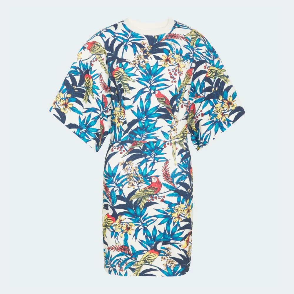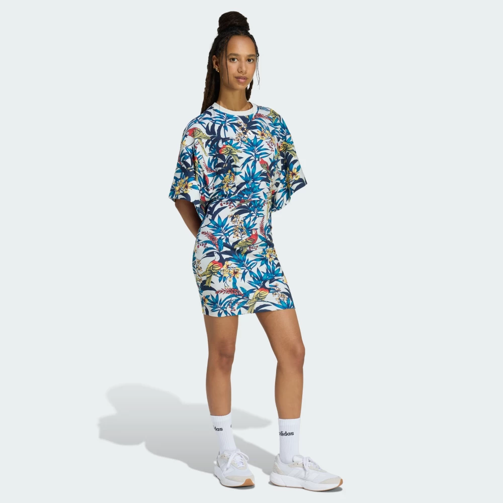 Колекція Adidas Sportswear поєднує в собі стиль та комфорт, створюючи ідеальні вироби для повсякденного носіння та активного способу життя. Плаття Adidas Farm Dress переносить Вас на сонячні баскетбольні майданчики, де життя вирує, музика звучить гучніше, а стиль говорить сам за себе. М’який трикотаж ніжно огортає тіло, даруючи відчуття легкості та комфорту з першої хвилини. Вільний крій і короткі рукави створюють відчуття абсолютної свободи, тож ніщо не сковує, лише підкреслює Ваш природний ритм. Круглий виріз додає образу витонченості та робить плаття універсальним для будь-яких щоденних пригод. А головний акцент — яскравий багатобарвний принт, у якому поєднуються тропічні мотиви та динаміка вуличної культури. Завершальним штрихом стає культовий логотип Adidas — символ стилю та впевненості, який говорить про Ваш бездоганний смак.