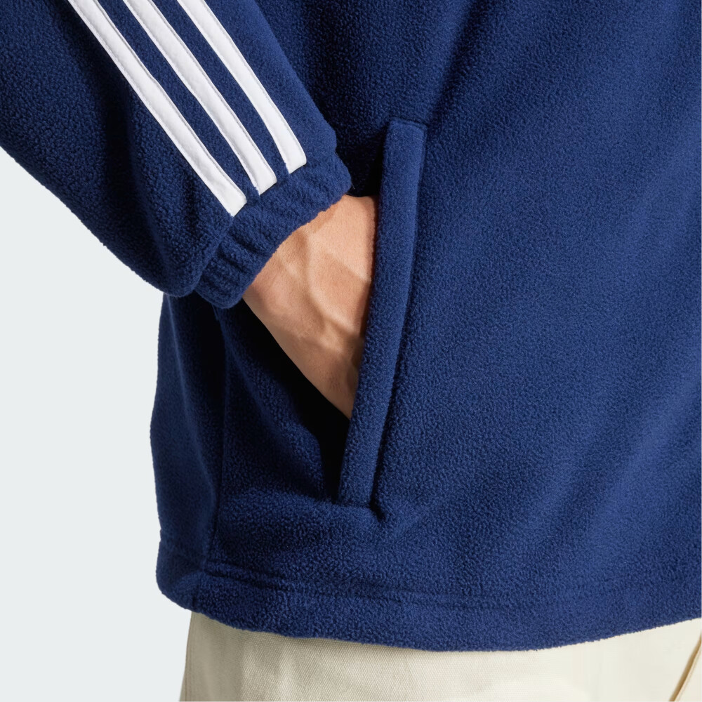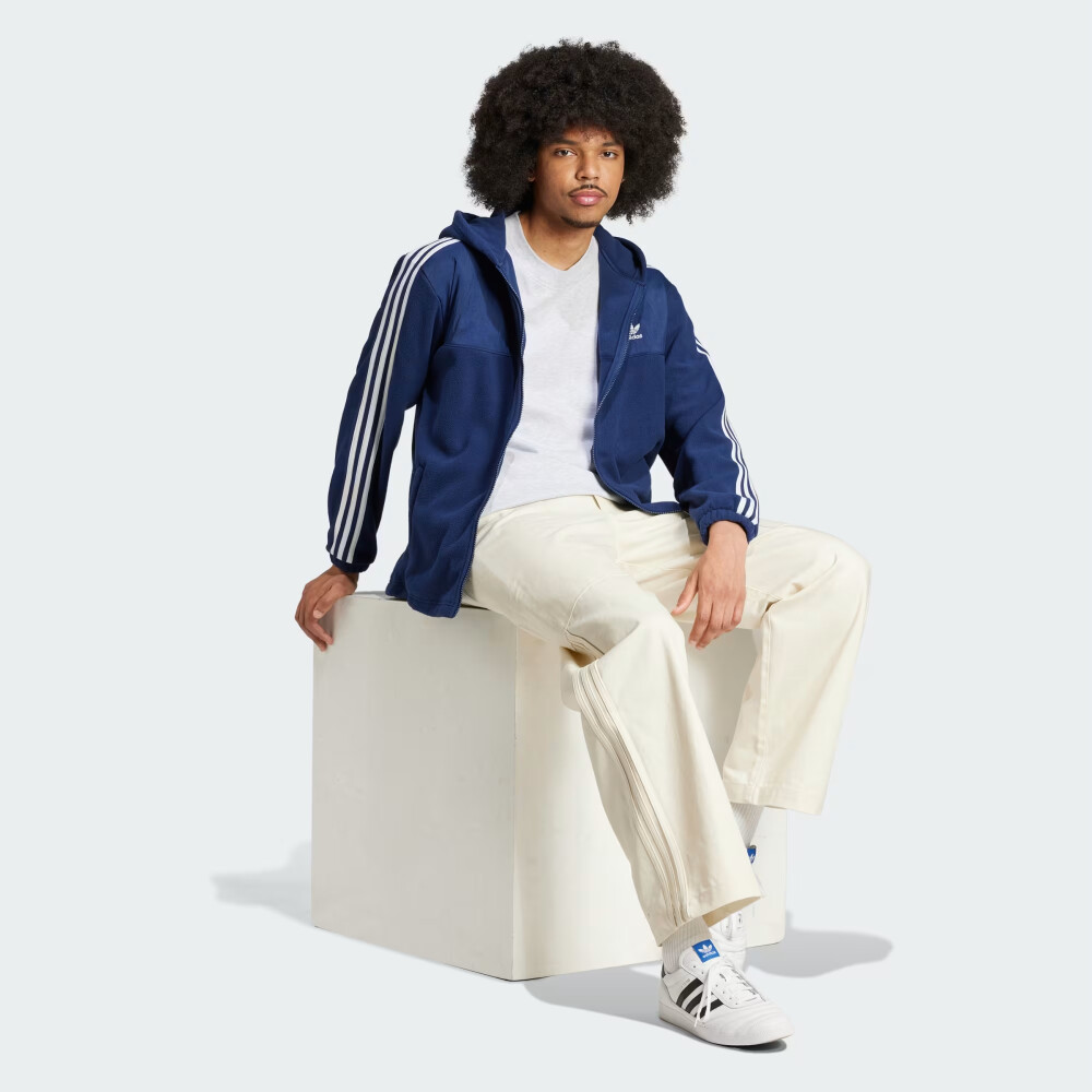 Колекція Adidas Originals заснована на використанні у виробництві найкращих матеріалів та практичних фасонів. Товари колекції створені для сміливих, впевнених у собі, та тих хто цінує максимальний комфорт у повсякденному житті. Кофта Adidas Originals Fleece hoodie відтворює класичний стиль, який пройшов перевірку часом та не втратив своєї актуальності. Вона виготовлена з флісової тканини, яка даруватиму Вам тепло та затишок протягом усього дня. Класичний крій з манжетами на рукавах надаватиме достатньо простору, щоб Ви могли впевнено рухатись. Кофта має блискавку по всій довжині, яка полегшуватиме процес одягання, та бічні кишені, щоб Ви завжди могли мати при собі корисні дрібнички. Капюшон сприятиме захисту від несприятливих проявів погоди. Кофта декорована логотипом та легендарними трьома смужками на рукавах, що додаватиме спортивної естетики у Ваші образи. Adidas піклується про зниження впливу на довкілля, тому кофта виготовлена зі 100% перероблених волокон.