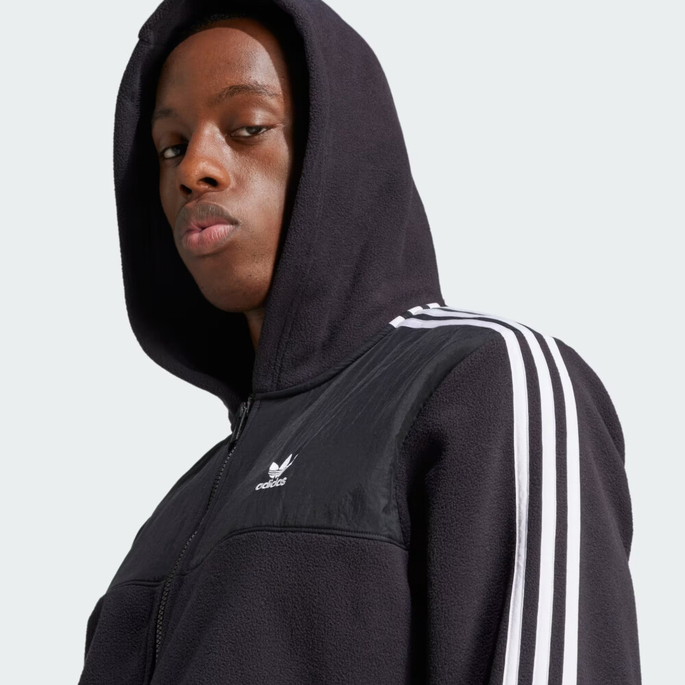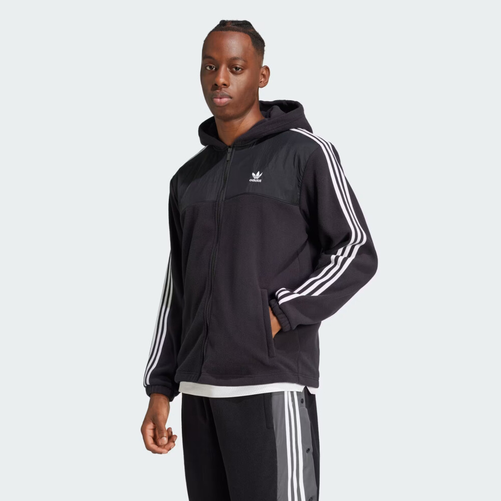 Колекція Adidas Originals заснована на використанні у виробництві найкращих матеріалів та практичних фасонів. Товари колекції створені для сміливих, впевнених у собі, та тих хто цінує максимальний комфорт у повсякденному житті. Кофта Adidas Originals Fleece hoodie відтворює класичний стиль, який пройшов перевірку часом та не втратив своєї актуальності. Вона виготовлена з флісової тканини, яка даруватиму Вам тепло та затишок протягом усього дня. Класичний крій з манжетами на рукавах надаватиме достатньо простору, щоб Ви могли впевнено рухатись. Кофта має блискавку по всій довжині, яка полегшуватиме процес одягання, та бічні кишені, щоб Ви завжди могли мати при собі корисні дрібнички. Капюшон сприятиме захисту від несприятливих проявів погоди. Кофта декорована логотипом та легендарними трьома смужками на рукавах, що додаватиме спортивної естетики у Ваші образи. Adidas піклується про зниження впливу на довкілля, тому кофта виготовлена зі 100% перероблених волокон.
