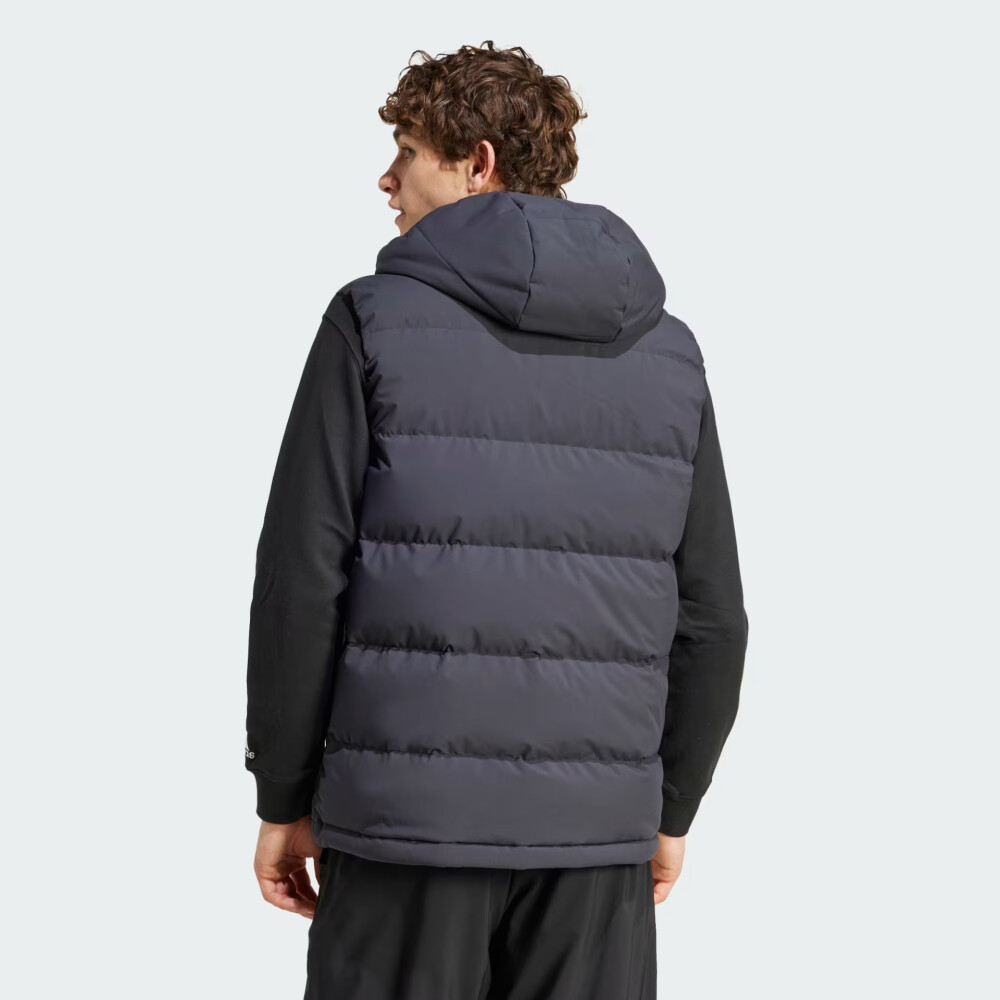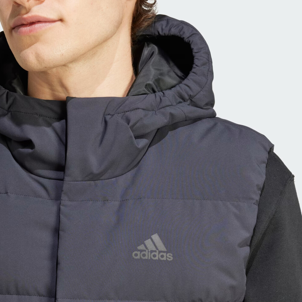 Колекція Adidas Sportswear змішує спорт і стиль, в ній новітні розробки поєднуються з естетичним зовнішнім виглядом, комфортом та універсальністю. Товари колекції є ідеальним варіантом для тих, хто хоче мати гарний вигляд та почуватись вільно. Куртка-жилет Adidas Helionic Vest створена для того, щоб подарувати Вам відчуття затишку у прохолодну погоду. Вона виготовлена з водовідштовхувальним покриттям PFC-free, тому захистить від дрібного дощу. Наповнювач із качиного пуху та пера щільністю 600 Fill Power сприятиме балансу тепла протягом усієї прогулянки. Класичний крій дозволить Вам вільно рухатись. Високий комір, капюшон та прихована блискавка планкою на кнопках гарантуватимуть захист від несприятливої погоди. Бічні кишені на блискавках дозволять мати при собі усі цінні дрібнички та зігріти руки. Куртка-жилет має лаконічний дизайн з невеликим логотипом, тому легко комбінуватиметься з різним одягом Вашого гардероба. Adidas піклується про зниження впливу на довкілля, тому матеріал виробу містить перероблені волокна, що є одним з рішень, які допомагають покласти край пластиковим відходам.