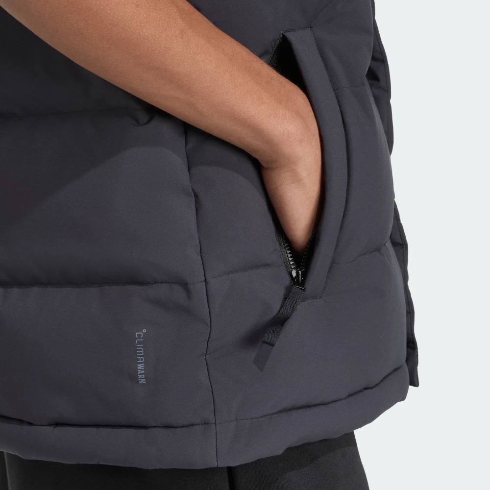 Колекція Adidas Sportswear поєднує в собі стиль та комфорт, створюючи ідеальні вироби для повсякденного носіння та активного способу життя. Куртка-жилет Adidas Helionic Vest — це поєднання тепла, легкості та стилю, яке створене, щоб Ви почувалися впевнено у прохолодні дні. Вона стане Вашим надійним захистом під час прогулянок, подорожей чи активних вихідних на природі. Завдяки водовідштовхувальному покриттю невеликий дощ не стане на заваді Ваших планів. Технологія ClimaWarm у поєднанні з натуральним пуховим наповнювачем щільністю 600 Fill Power огортає приємним теплом, зберігаючи легкість і свободу рухів. Класичний крій створює гармонійний силует, а блискавка по всій довжині та штормовий клапан на кнопках захищають від вітру, даруючи ще більше затишку. Капюшон із високим коміром зробить Вас готовим до несподіваних змін погоди, тож Ви зможете впевнено рухатись вперед. Бічні кишені на блискавках зігріють руки та вмістять корисні дрібнички, які варто завжди мати при собі. Лаконічний логотип Adidas додасть образу спортивної впевненості. Adidas піклується про зниження впливу на довкілля, тому модель виготовлено з використанням перероблених матеріалів.