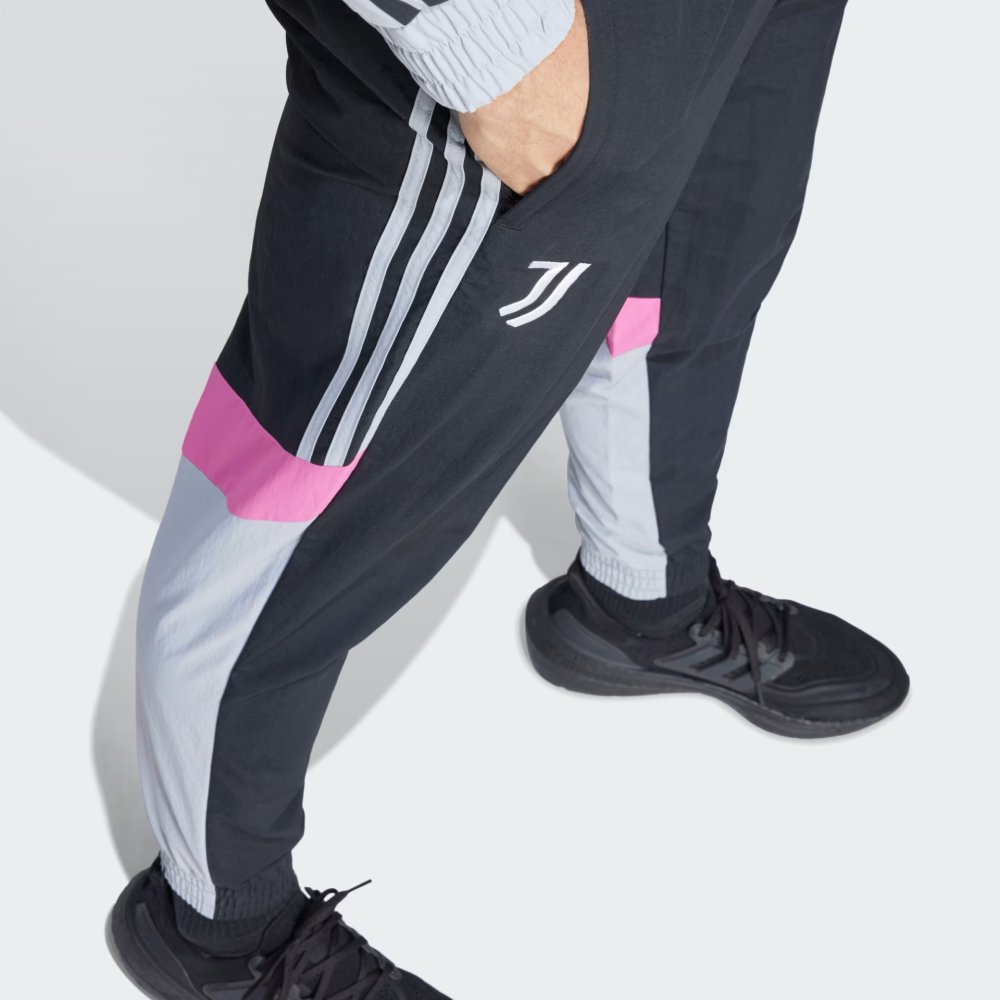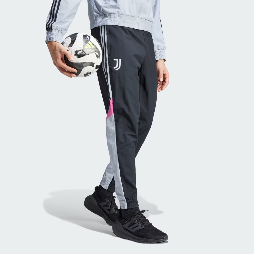 У 2015 році Adidas став титульним спонсором італійського ФК Ювентус, одного з найбільш титулованих клубів Європи та світу. Відповідно було створено ліцензовану лінійку одягу та аксесуарів, щоб вболівальники могли демонструвати відданість улюбленим гравцям. Спортивні штани Adidas Juve Wv Tp виготовлені з м'якої тканини, яка є приємною до тіла та досить стійкою до швидких ознак зношування. Класичний крій зі злегка звуженими до низу штанинами з манжетами гарантуватиме зручну посадку, не сковуючи при цьому Ваших рухів. Еластичний пояс зі внутрішнім шнурком забезпечуватиме надійну фіксацію, а бічні кишені на блискавках дозволять мати при собі корисні дрібнички. Спортивні штани декоровані контрастними елементами та вишитим клубним гербом, що підкреслюватиме Вашу прихильність до ФК Ювентус. Adidas піклується про зниження впливу на довкілля, тому матеріал виготовлено зі 100% перероблених волокон