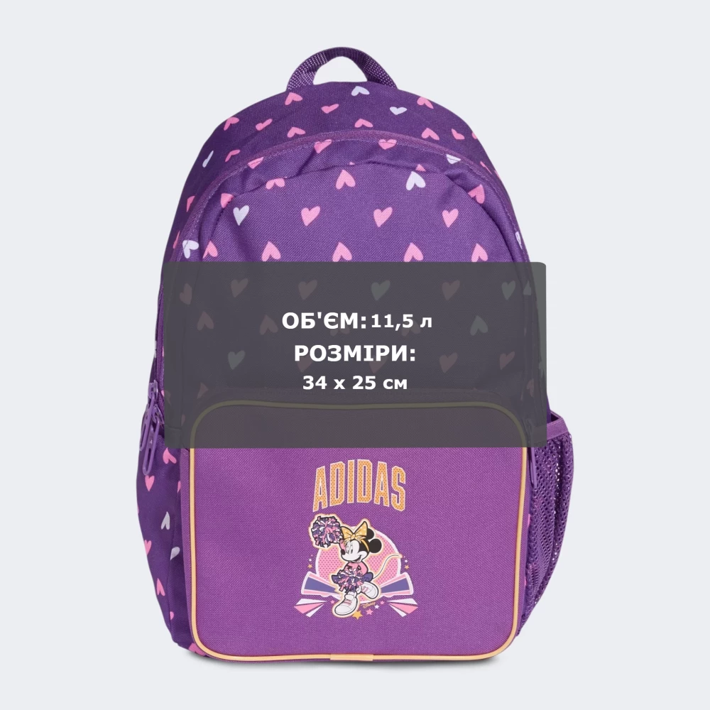 Лінійка Adidas x Disney Mickey створена для того, щоб подарувати дитині відчуття комфорту та свободи, а також радості та щастя. Вона дозволить відчути свою унікальність та стати головним героєм нової пригоди. Рюкзак Adidas Lk Dy Mi Bpk зробить кожен день маленької мрійниці трішки веселішим і барвистішим. Яскравий дизайн з улюбленою Minnie Mouse підіймає настрій і перетворює звичайні збори до садочка, школи чи на прогулянку на справжнє задоволення. Міцний синтетичний матеріал легко витримує активний ритм дитинства та щоденні пригоди. Просторе основне відділення з легкістю вміщує книжки, альбом для малювання чи улюблені іграшки, а передня кишеня допоможе зручно впорядкувати дрібнички, які завжди мають бути під рукою. Сітчаста бічна кишеня — ідеальне місце для пляшечки з водою, щоб Ваша дівчинка могла освіжитися в будь-яку мить. М’які регульовані лямки разом із нагрудним ремінцем забезпечують комфортну посадку, навіть коли рюкзак повністю наповнений. Яскраві принти Minnie Mouse у поєднанні з фірмовим стилем Adidas додає образу казковості та спортивного акценту. Adidas піклується про зниження впливу на довкілля, тому модель виготовлено з використанням перероблених матеріалів.