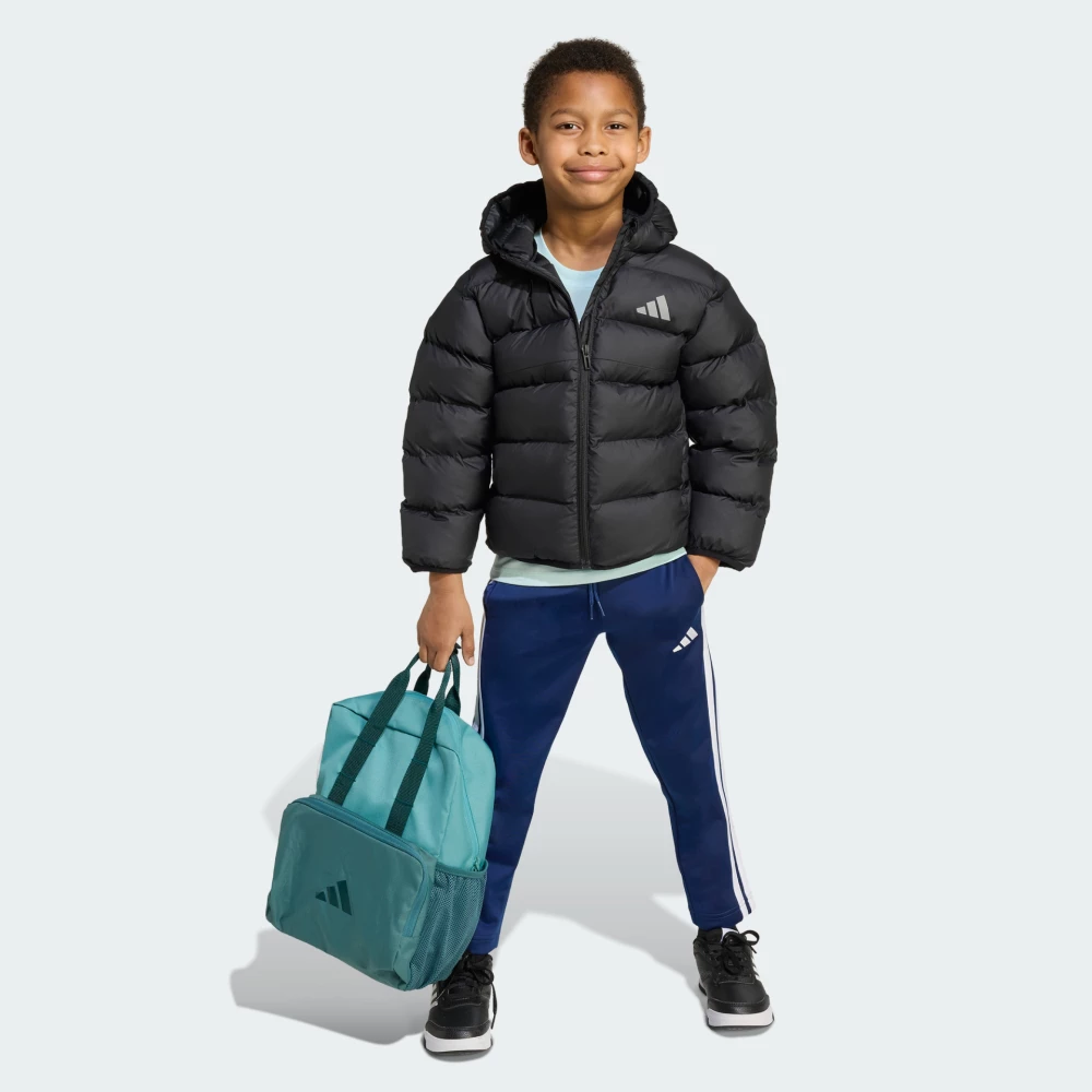 Колекція Adidas Sportswear поєднує в собі стиль та комфорт, створюючи ідеальні вироби для повсякденного носіння та активного способу життя. Куртка Adidas Lk Sd Jkt стане ідеальний супутник для маленьких дослідників, які не бояться руху та пригод, навіть коли за вікном прохолодно. Міцний матеріал із водовідштовхувальним покриттям захистить від дрібного дощу чи снігу, а легкий синтетичний утеплювач забезпечує тепло, щоб дитині було зручно бігати, стрибати й гратися на свіжому повітрі. Технологія ClimaWarm підтримує оптимальну температуру тіла та ефективно відводить вологу, допомагаючи залишатися в комфорті під час активного руху. Продуманий крій гарантує повну свободу дій, а капюшон із високим коміром захищає від вітру. Еластичні манжети утримують тепло всередині, а бічні кишені стануть у пригоді для дрібниць або щоб зігріти руки. Світловідбивні елементи підвищують безпеку, адже роблять дитину помітною у темну пору доби. Лаконічний дизайн із впізнаваним логотипом Adidas додають впевненості та відображають активний характер маленького модника. Модель рекомендована для дітей віком від 4 до 8 років. Adidas піклується про зниження впливу на довкілля, тому модель виготовлено з використанням перероблених матеріалів.