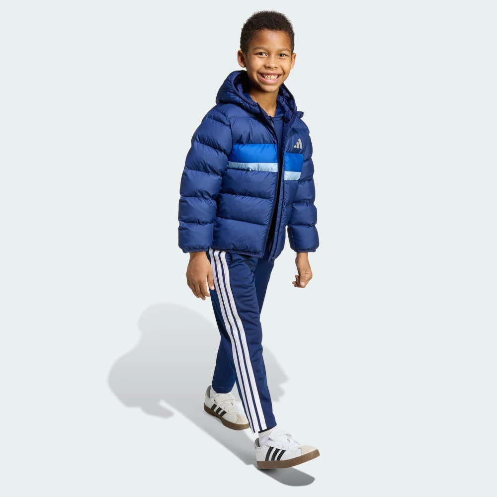Колекція Adidas Sportswear поєднує в собі стиль та комфорт, створюючи ідеальні вироби для повсякденного носіння та активного способу життя. Куртка Adidas Lk Sd Jkt стане ідеальний супутник для маленьких дослідників, які не бояться руху та пригод, навіть коли за вікном прохолодно. Міцний матеріал із водовідштовхувальним покриттям захистить від дрібного дощу чи снігу, а легкий синтетичний утеплювач забезпечує тепло, щоб дитині було зручно бігати, стрибати й гратися на свіжому повітрі. Технологія ClimaWarm підтримує оптимальну температуру тіла та ефективно відводить вологу, допомагаючи залишатися в комфорті під час активного руху. Продуманий крій гарантує повну свободу дій, а капюшон із високим коміром захищає від вітру. Еластичні манжети утримують тепло всередині, а бічні кишені стануть у пригоді для дрібниць або щоб зігріти руки. Світловідбивні елементи підвищують безпеку, адже роблять дитину помітною у темну пору доби. Гармонійне поєднання кольорів разом із впізнаваним логотипом Adidas додають впевненості та відображають активний характер маленького модника. Модель рекомендована для дітей віком від 4 до 8 років. Adidas піклується про зниження впливу на довкілля, тому модель виготовлено з використанням перероблених матеріалів.