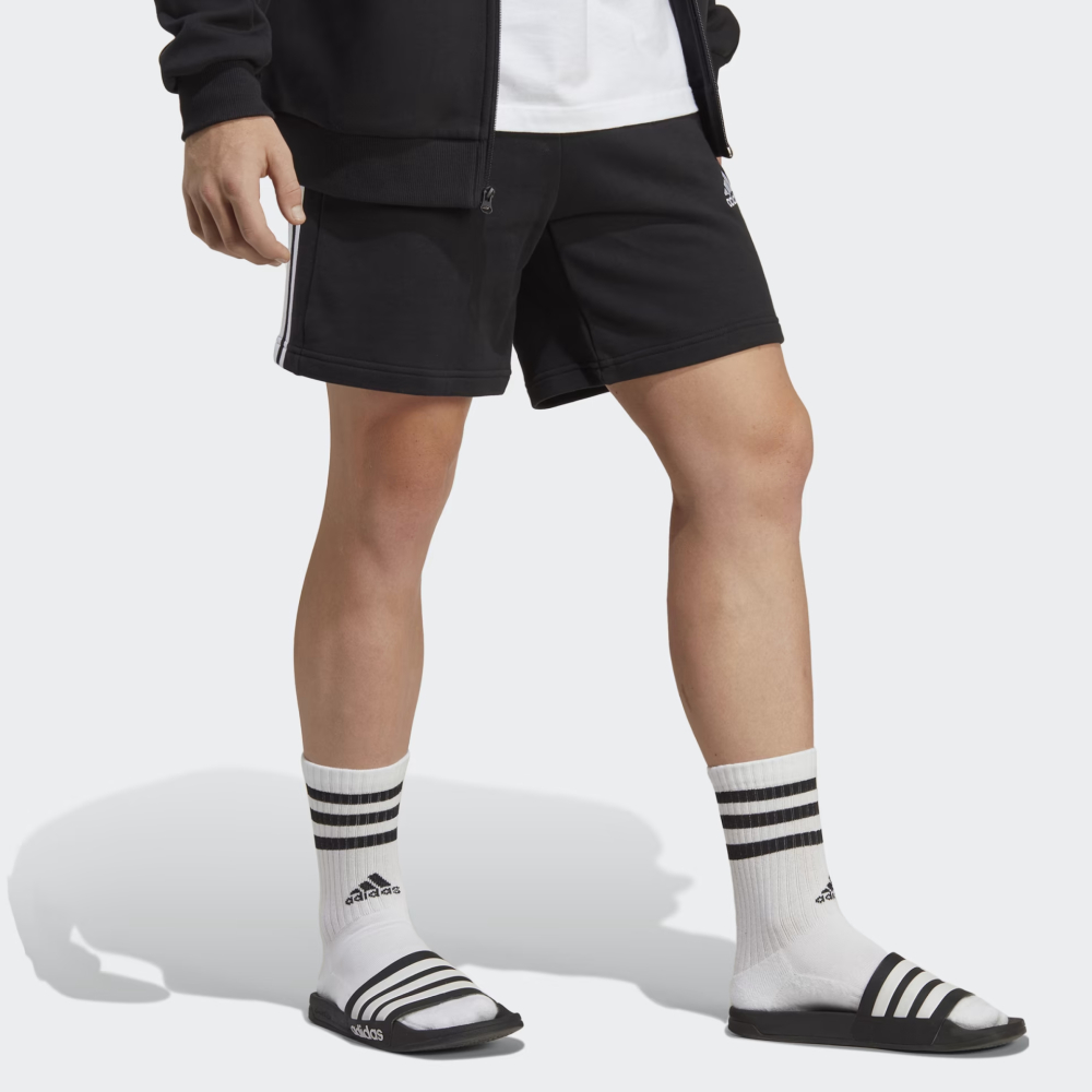 Колекція Adidas Sportswear змішує спорт і стиль, в ній новітні розробки поєднуються з естетичним зовнішнім виглядом, комфортом та універсальністю. Товари колекції є ідеальним варіантом для тих, хто хоче мати гарний вигляд та почуватись вільно. Шорти Adidas M 3s Ft Sho виготовлені з тканини french terry, яка є приємною до тіла та досить стійкою до швидких ознак зношування. Класичний крій та оптимальна довжина не сковуватимуть Ваших рухів, а еластичний пояс з текстильним шнурком гарантуватимуть надійну фіксацію. Бічні кишені дозволять брати з собою на прогулянки корисні дрібнички. Шорти декоровані логотипом та фірмовими смужками, що підкреслюватиме Вашу прихильність до спортивного стилю бренду. Adidas піклується про зниження впливу на довкілля, тому бавовна виготовлена по програмі Better Cotton Initiative, яка розвиває екологічне бавовництво.