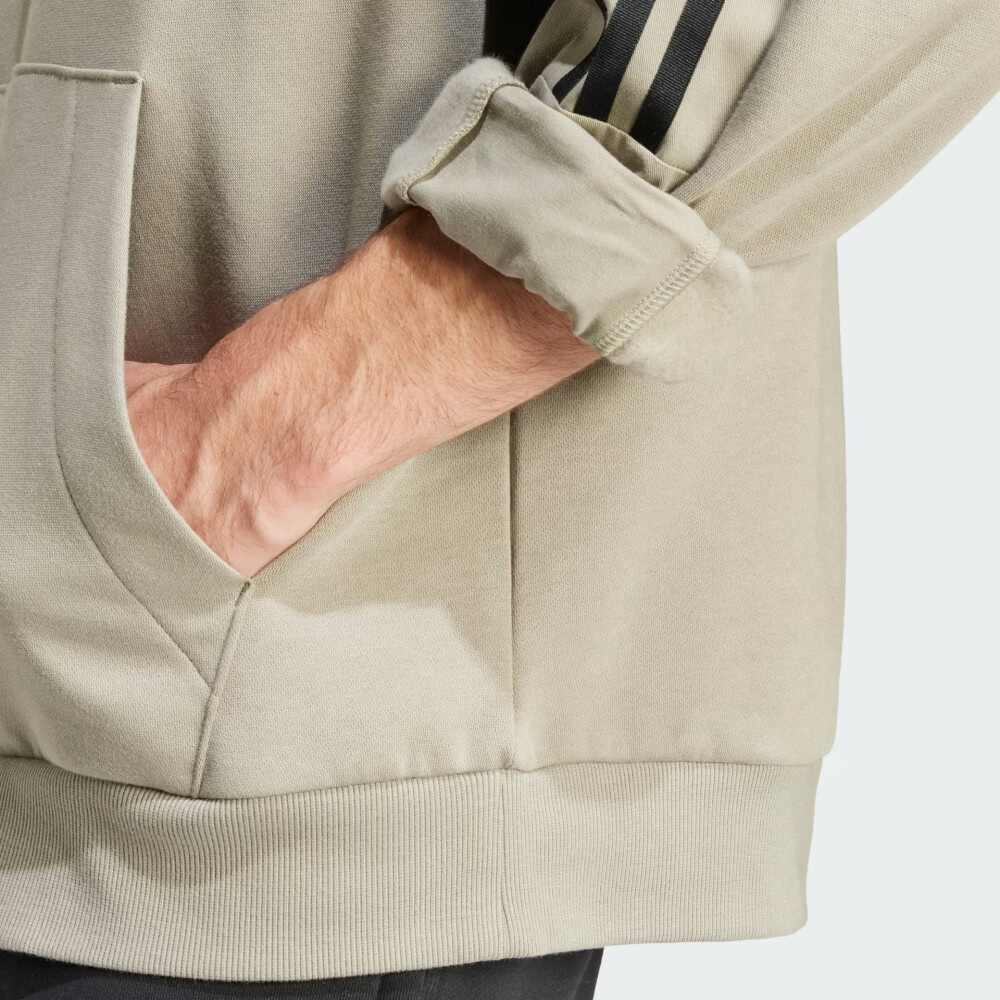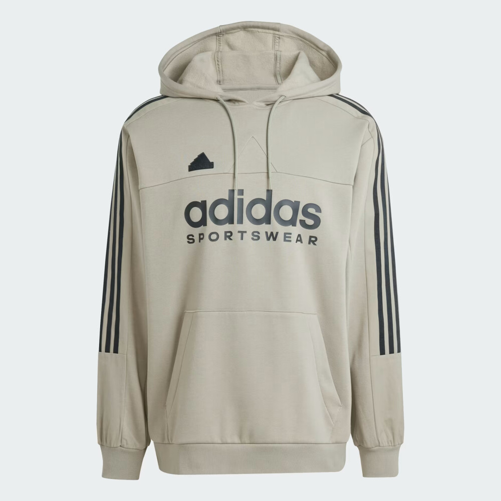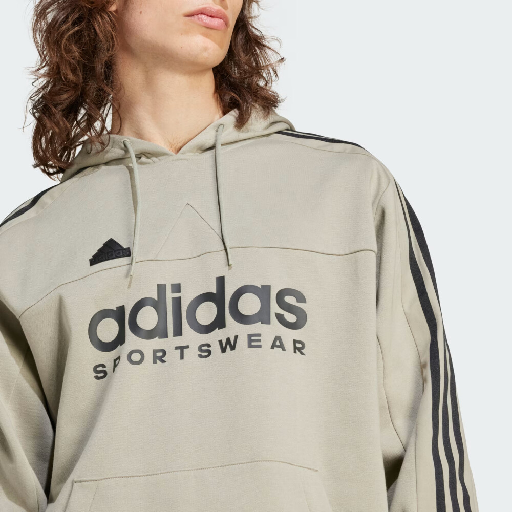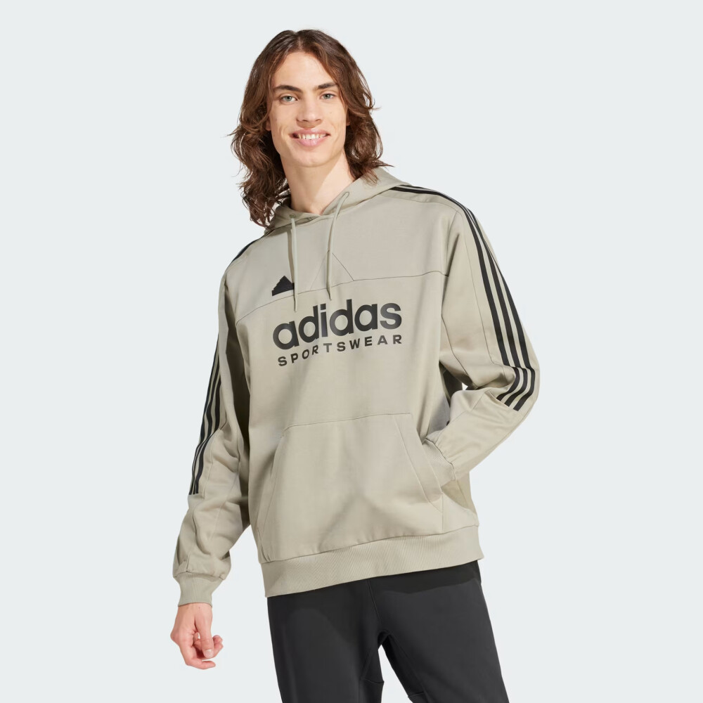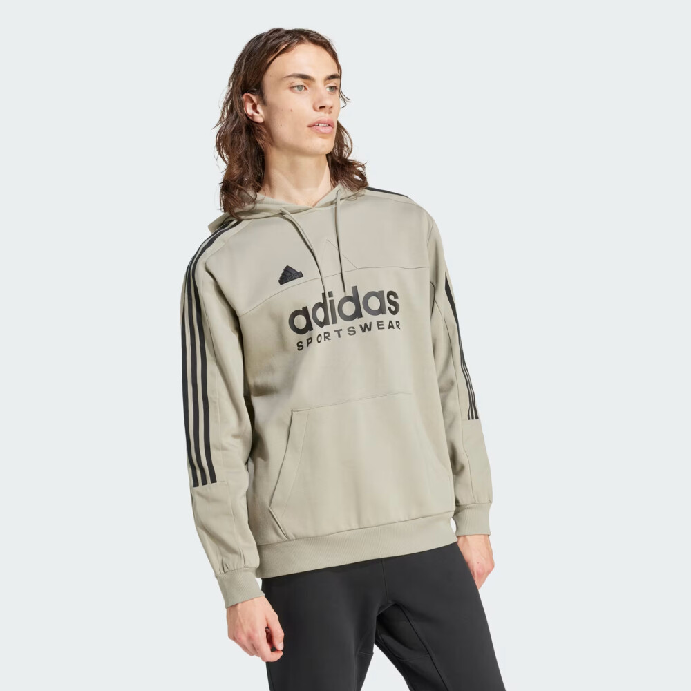 Колекція Adidas Sportswear змішує спорт і стиль, в ній новітні розробки поєднуються з естетичним зовнішнім виглядом та універсальністю. Кофта Adidas M Tiro Hoodie натхненна вуличною модою, тому дозволить створювати неймовірно стильні та комфортні повсякденні образи. Вона виготовлена з легкого флісового матеріалу, який зігріє у прохолодну погоду. Вільний крій зі злегка спущеними плечовими швами не сковуватиме Ваших рухів, а ребристі манжети покращуватимуть фіксацію. Капюшон з текстильним шнурком захистить від несприятливої погоди, а кишеня кенгуру дозволить мати при собі корисні дрібнички. Кофта декорована контрастними елементами, які демонструватимуть Вашу прихильність до вуличного стилю. Adidas піклується про зниження впливу на довкілля, тому матеріал виробу щонайменше на 50% є сумішшю перероблених і відновлюваних матеріалів.