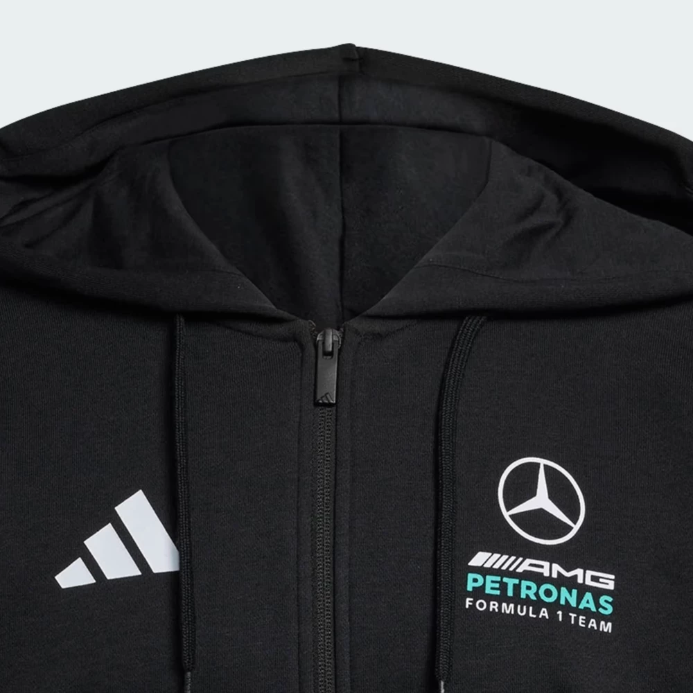 Лінійка Adidas Mercedes-AMG Petronas Formula One Team дозволить Вам відчути себе частиною легендарної команди та зануритися в атмосферу швидкості, адреналіну й перемог. Кофта Adidas Mer DNA Fz Hd M створена для тих, хто мислить динамічно, рухається впевнено і щодня обирає власну траєкторію перемог. М’яка тканина огортає приємним затишком та дарує відчуття комфорту від ранкового старту до вечірніх зустрічей. Вільний крій зі спущеними плечовими швами додає образу сучасного стилю та драйву, що дозволить рухатися легко у власному темпі. Манжети на рукавах і по низу формують зібраний силует і допомагають зберігати тепло, коли погода випробовує на витривалість. Двошаровий капюшон додає ще більше затишку, а блискавка на всю довжину відкриває простір для стилю. Зручні бічні кишені тримають під рукою найнеобхідніше, щоб Ви залишалися в русі без зайвих зупинок. Виразний брендинг із культовими трьома смужками та логотипи підкреслюють спадщину Adidas і додає моделі спортивної сили.
