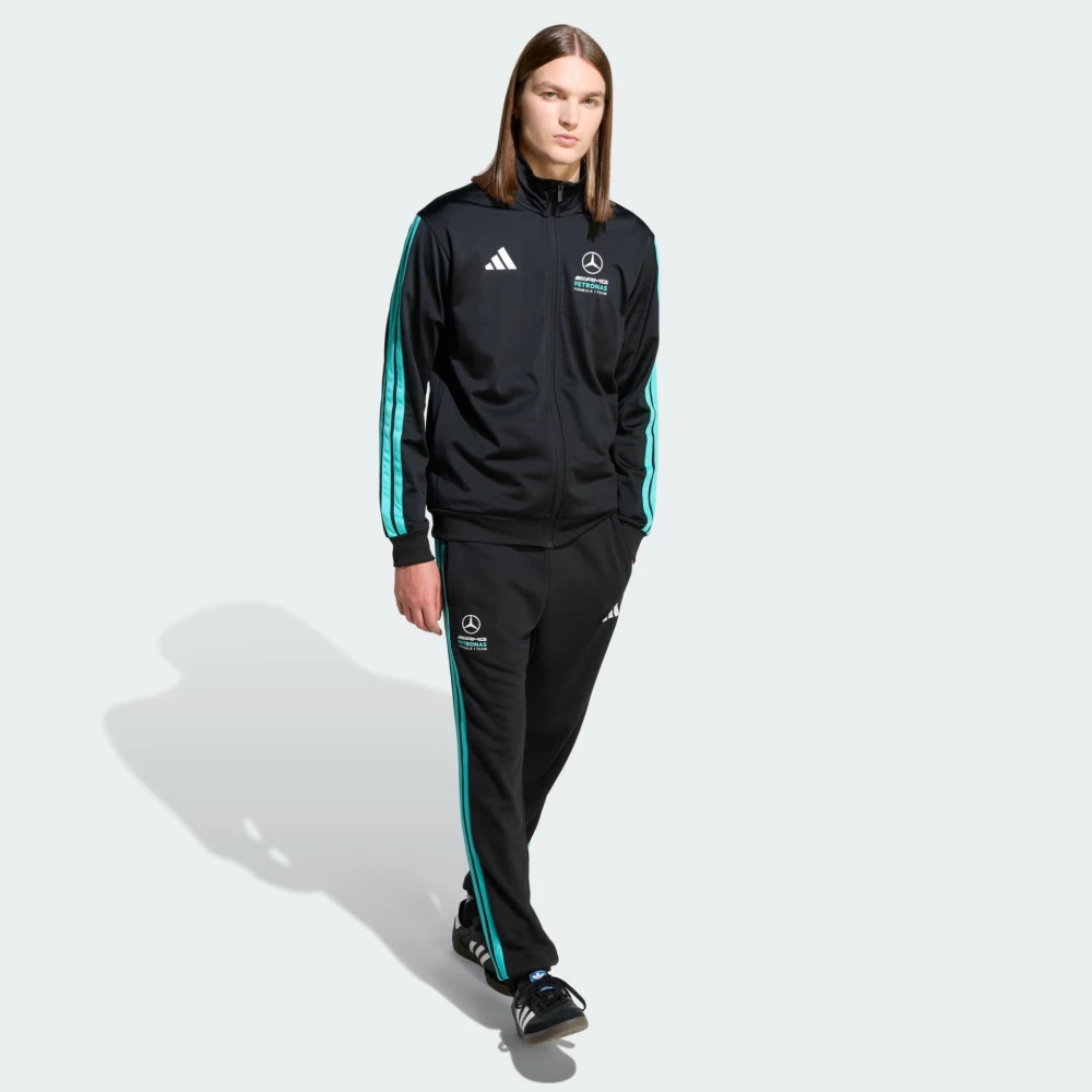 Лінійка Adidas Mercedes-AMG Petronas Formula One Team дозволить Вам відчути себе частиною легендарної команди та зануритися в атмосферу швидкості, адреналіну й перемог. Спортивні штани Adidas Mer DNA Pnt M створені для тих, хто мислить динамічно, рухається впевнено і щодня обирає власну траєкторію перемог. М’яка тканина french terry огортає приємним затишком та дарує відчуття комфорту від ранкового старту до вечірніх зустрічей. Класичний крій з манжетами знизу штанин додає образу сучасного стилю та не сковує Ваших рухів. Еластичний пояс із текстильним шнурком надасть надійну фіксацію, тож Ви будете впевненим у кожному кроці. Зручні бічні кишені тримають під рукою найнеобхідніше, щоб Ви залишалися в русі без зайвих зупинок. Виразний брендинг із культовими трьома смужками та логотипи підкреслюють спадщину Adidas і додає моделі спортивної сили. Adidas піклується про зниження впливу на довкілля, тому модель виготовлено з використанням перероблених матеріалів.