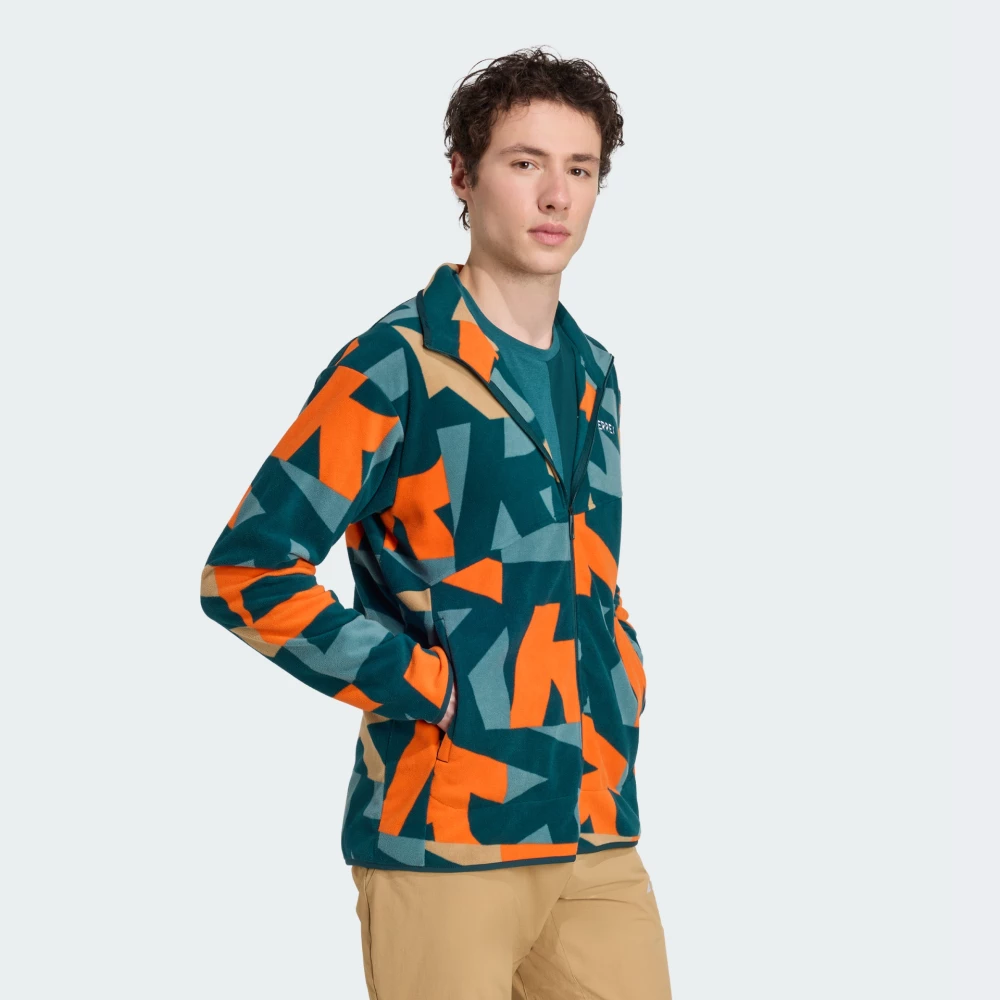 Колекція Adidas Terrex створена для тих, хто живе в ритмі природи та прагне досліджувати світ. У кожному елементі втілено інновації, надійність і турботу про комфорт, аби Ви могли почуватися впевнено у найрізноманітніших умовах — від прогулянки в лісі до підкорення нових маршрутів. Кофта Adidas Mt Aop Fz Fl — це втілення свободи та стилю для тих, хто живе в ритмі природи й не зупиняється перед жодними викликами. Вона створена для активних днів на свіжому повітрі — від захопливих гірських маршрутів до прогулянок вулицями міста. М’який фліс із ніжною текстурою зігріває у прохолодну погоду, забезпечуючи комфорт протягом усього дня. Класичний крій з еластичними манжетами гарантує зручну посадку, не обмежує рухів і дозволяє почуватися максимально вільно під час будь-яких активностей. Високий комір ефективно захищає шию від вітру, а зручна блискавка по всій довжині дає змогу швидко адаптуватися до змін погоди чи інтенсивності руху. Бічні кишені на блискавках стануть ідеальним місцем для необхідних дрібниць та дозволять зігріти руки під час відпочинку. Особливого характеру кофті додає абстрактний суцільний принт, який оживляє кожен образ і наповнює його енергією пригод. Завершує образ логотип Terrex — символ рішучості, натхнення та любові до активного способу життя. Adidas піклується про зниження впливу на довкілля, тому модель виготовлено з використанням перероблених матеріалів.