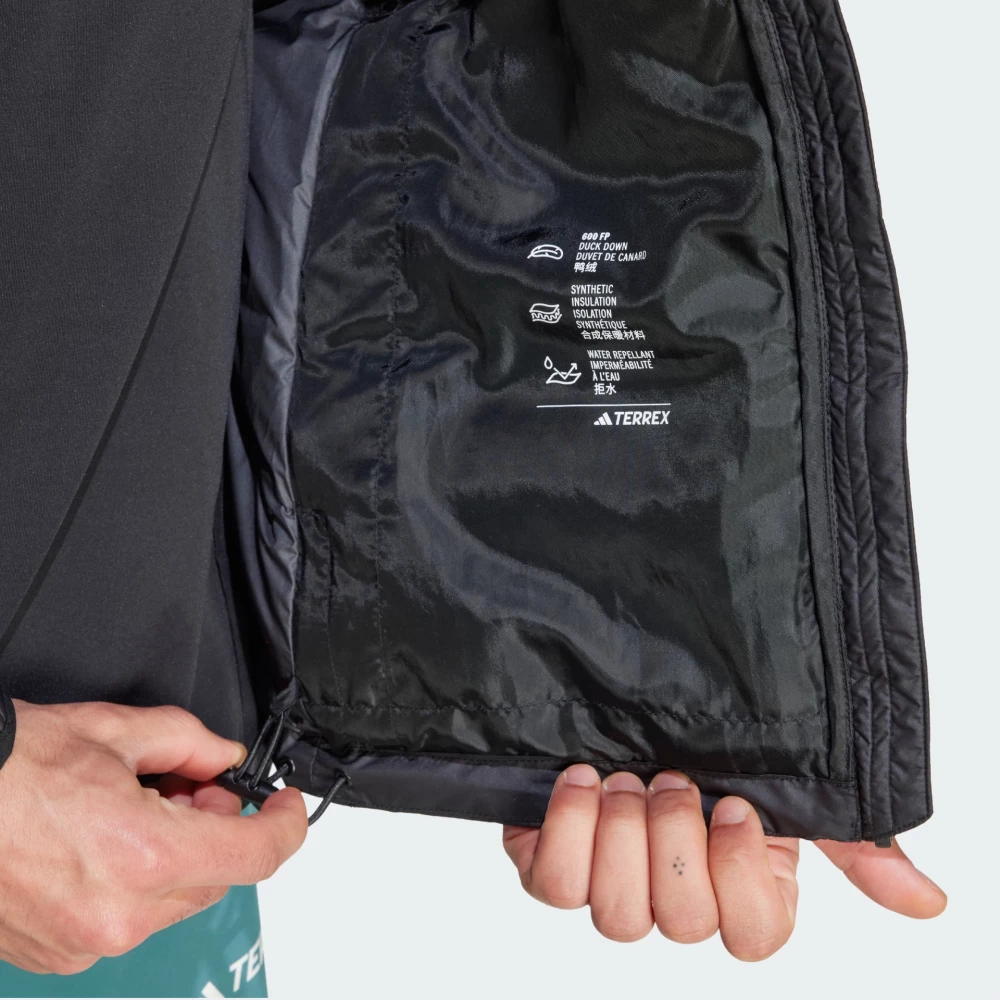 Колекція Adidas Terrex створена для тих, хто живе в ритмі природи та прагне досліджувати світ. У кожному елементі втілено інновації, надійність і турботу про комфорт, аби Ви могли почуватися впевнено у найрізноманітніших умовах — від прогулянки в лісі до підкорення нових маршрутів. Пуховик Adidas Mt Down Ho J створений, щоб супроводжувати Вас у кожній подорожі. Він має водовідштовхувальне покриття, тому Ви будете захищені від легкого дощу. Пуховий наповнювач рівномірно розподілений по всій поверхні та дарує приємне тепло без відчуття громіздкості. Інноваційна технологія ClimaWarm підтримує оптимальний мікроклімат, тому Ви почуватиметеся комфортно як під час активного руху, так і під час спокійних прогулянок. Класичний крій не обмежує Ваших рухів, а високий комір з капюшоном та шнурок знизу забезпечують відчуття затишку, щоб Ви могли впевнено вирушати на пошуки нових пригод. Зручні бічні кишені дозволять зігріти руки та зберігати цінні дрібнички завжди біля себе. Завершує образ лаконічний логотип Terrex, що символізує прагнення до руху, пригод і життя без меж. Adidas піклується про зниження впливу на довкілля, тому модель виготовлено з використанням перероблених матеріалів.