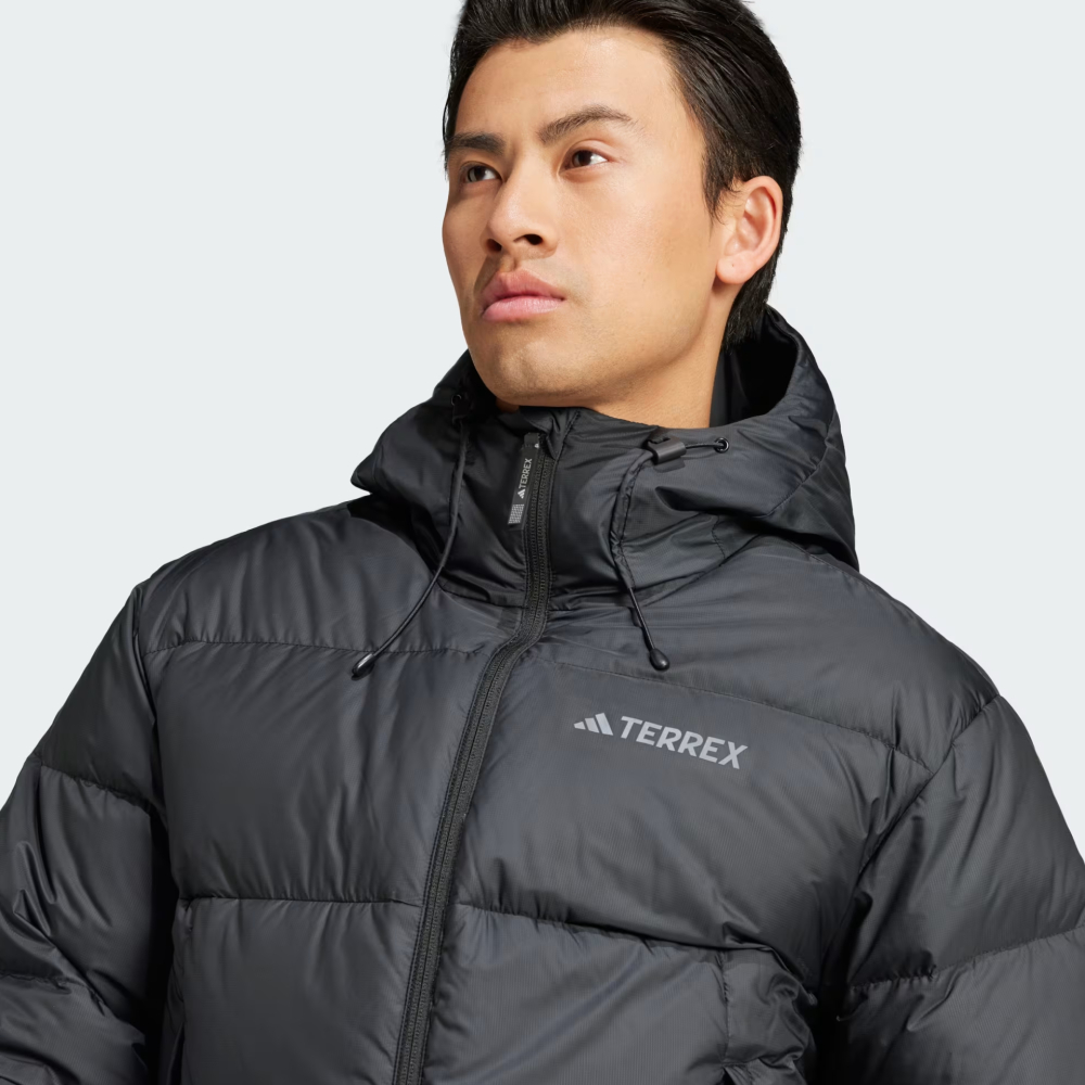 Колекція Adidas Terrex створена для любителів активного відпочинку на природі. Кожен елемент колекції виготовлений з урахуванням найвищих стандартів якості та функціональності, що гарантує комфорт у будь-яких умовах. Пуховик Adidas Mt Goose Jkt призначений для того, щоб морозні зимові дні не ставали між Вами та Вашими планами. Він захистить від снігу та дощу завдяки водовідштовхувальній обробці, дозволяючи насолоджуватись довгими прогулянками навіть у похмурі дні. Наповнений теплом натурального пуху та оснащений технологією Cold.Rdy, тому пуховик огортатиме затишком, де б Ви не були. Класичний крій забезпечуватиме простір для комфортного руху та дозволятиме одягнути кілька шарів для додаткового тепла. Високий комір та регульований капюшон стануть надійною перешкодою для холодного вітру. Зручні бічні кишені дозволятимуть зігріти руки та зберігати всі необхідні речі під рукою – від телефону до ключів. Пуховик декоровано невеликим логотипом, який підкреслюватиме стильний, спортивний дух бренду, що супроводжуватиме Вас у будь-яких пригодах. Adidas піклується про зниження впливу на довкілля, тому модель виготовлено щонайменше на 70% з перероблених матеріалів, що сприяє зменшенню залежності від обмежених ресурсів.