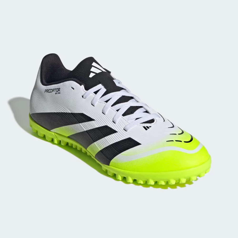 Бутси Adidas Predator Club Tf створені для тих, хто кожного тренування прагне довести свою майстерність. Синтетичний верх із рельєфною текстурою Strikeprint дарує максимальний контроль над м’ячем: Ваші паси, фінти та удари стануть ще точнішими й небезпечнішими для суперника. Асиметрична шнурівка щільно охоплює стопу, тому додасть стабільності та впевненості в кожному русі. Гумова підошва з виступами розроблена спеціально для штучних покриттів, забезпечуючи ідеальне зчеплення та вигідні позиції для переможних ударів. А стильний дизайн з культовими трьома смужками та логотипом Adidas підкреслює Вашу рішучість, амбіції та справжню пристрасть до футболу.
