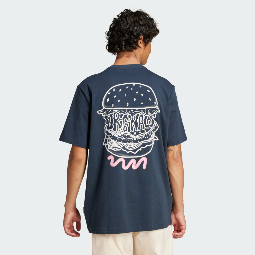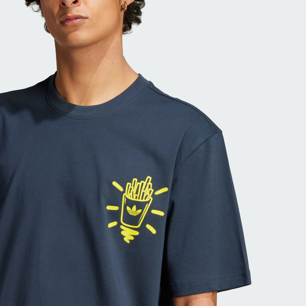 Колекція Adidas Originals створена для тих, хто не боїться виділятися, хто впевнено крокує вулицями мегаполіса та цінує бездоганний стиль у кожній деталі. Футболка Adidas Originals Q12 Ts Street B — це сміливе поєднання легендарної класики та вибухового вуличного стилю, створене для тих, хто не боїться виділятися. Вона легко інтегрується у сучасний образ, додаючи йому креативу, настрою та індивідуальності. Футболка виготовлена з високоякісної бавовни, тому дарує приємні тактильні відчуття та відчуття комфорту протягом усього дня — навіть тоді, коли Ви на ногах від світанку до заходу сонця. Вільний крій зі спущеними плечовими швами створює розслаблений силует, який не обмежує рухів і дозволяє залишатися собою в будь-яких ситуаціях. Кругла горловина з м’якою внутрішньою стрічкою запобігає подразненням, щоб ніщо не відвертало увагу від активного життя. Дизайн моделі — справжній вибух креативу: графіка з картоплею фрі на грудях та яскравий принт гамбургера на спині створюють грайливий образ, що підкреслює почуття гумору.