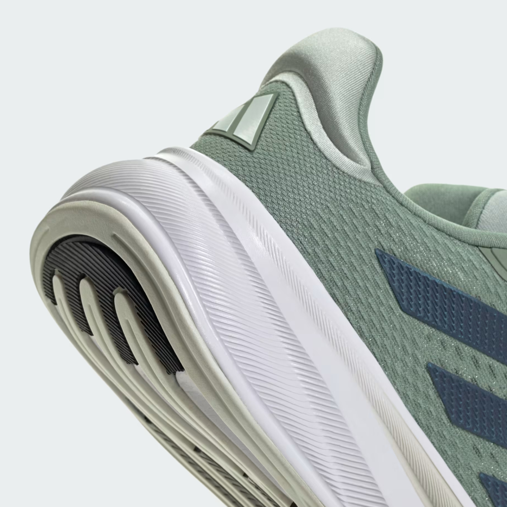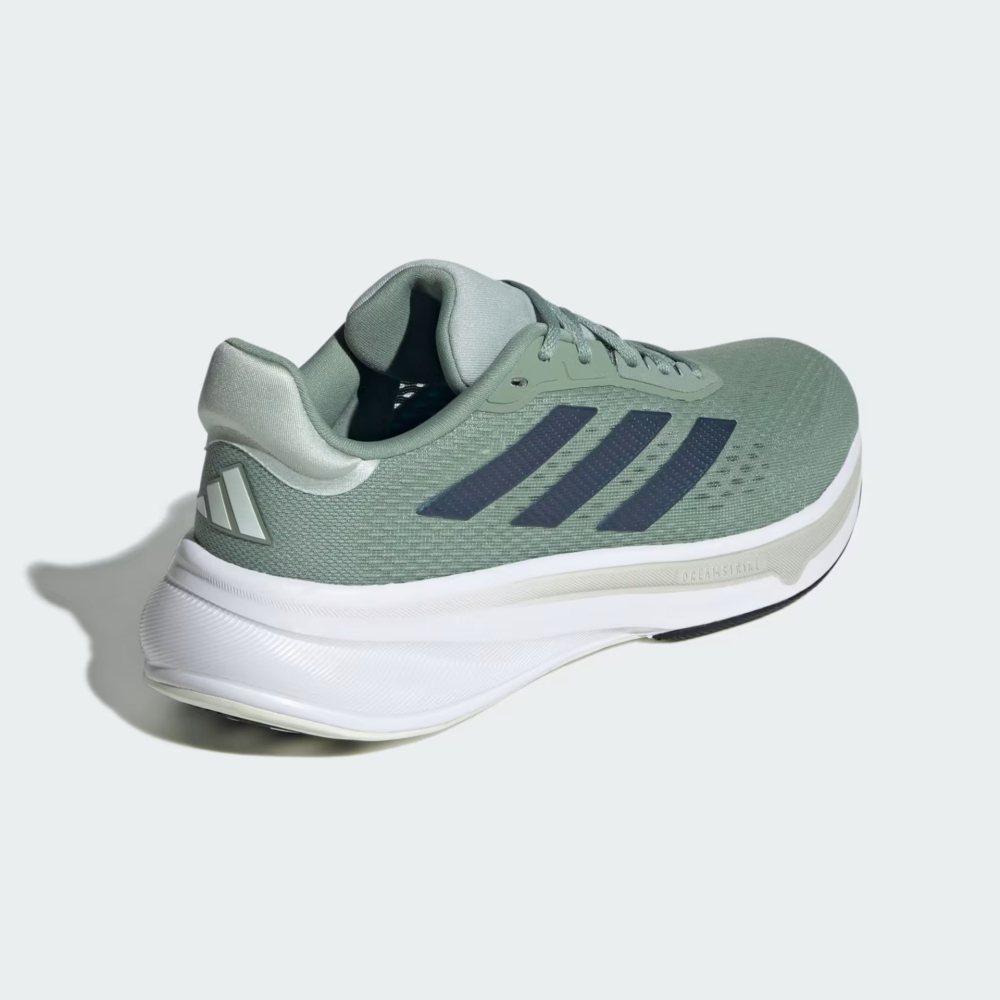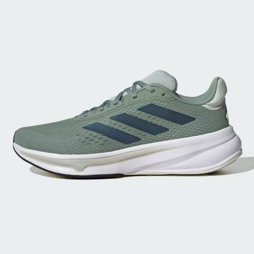 Кросівки Adidas Response Super M створені для тих, хто живе бігом і прагне досягати максимуму на кожному тренуванні. Верх із моносітки забезпечує оптимальну вентиляцію та зберігає приємну прохолоду протягом усього маршруту. Синтетичні накладки додають конструкції стійкості, утримуючи стопу в правильному положенні навіть на поворотах і при зміні темпу. Система шнурівки надає надійну фіксацію, тож Ви відчуваєте впевненість у кожному русі, зосереджуючись виключно на ритмі бігу. Устілка OrthoLite адаптується до форми стопи, даруючи м’якість і гігієнічність, а проміжна підошва Dreamstrike поглинає ударні навантаження, забезпечуючи м’який відрив і плавний перехід з п’яти на носок. Гумові стрижні по всій довжині підошви забезпечують надійне зчеплення з різними поверхнями — від асфальту до бігових доріжок, допомагаючи зберігати стабільність і контроль. Завершують образ три фірмові смужки та логотип Adidas, що підкреслюють Вашу пристрасть до спорту та відданість легендарному стилю бренду. Adidas піклується про зниження впливу на довкілля, тому модель виготовлено з використанням перероблених матеріалів.