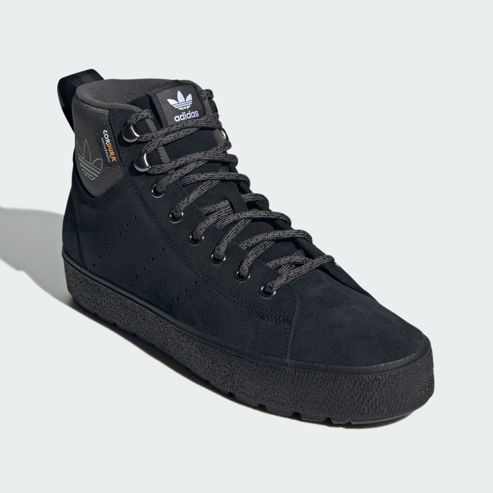 Черевики Adidas Originals Stan Smith Cs Wtr у своєму дизайні відтворюють класичну модель 80-х років, яка була адаптована для сьогодення. Вони мають верх із фактурної замші, яка надаватиме оптимальний мікроклімат всередині та вишуканий вигляд. Додавання матеріалу Cordura на щиколотці сприятиме захисту від вологи, дозволяючи впевнено вирушати на зустріч новому дню у невеликий дощ чи сніг. Завищена конструкція та щільна шнурівка забезпечуватимуть надійну фіксацію та підтримку гомілкостопу, що важливо під час тривалих прогулянок або активного руху. М'яка текстильна підкладка з гладенькими швами створюватиме приємні відчуття затишку, запобігаючи при цьому натиранню та дискомфорту протягом усієї прогулянки. Міцна гумова підошва моделі з вираженим протектором гарантуватиме відмінне зчеплення з різними типами поверхонь – від міських тротуарів до злегка засніжених доріжок. Класичний силует черевиків доповнено логотипом, який демонструватиме Вашу прихильність до стилю Adidas Originals.