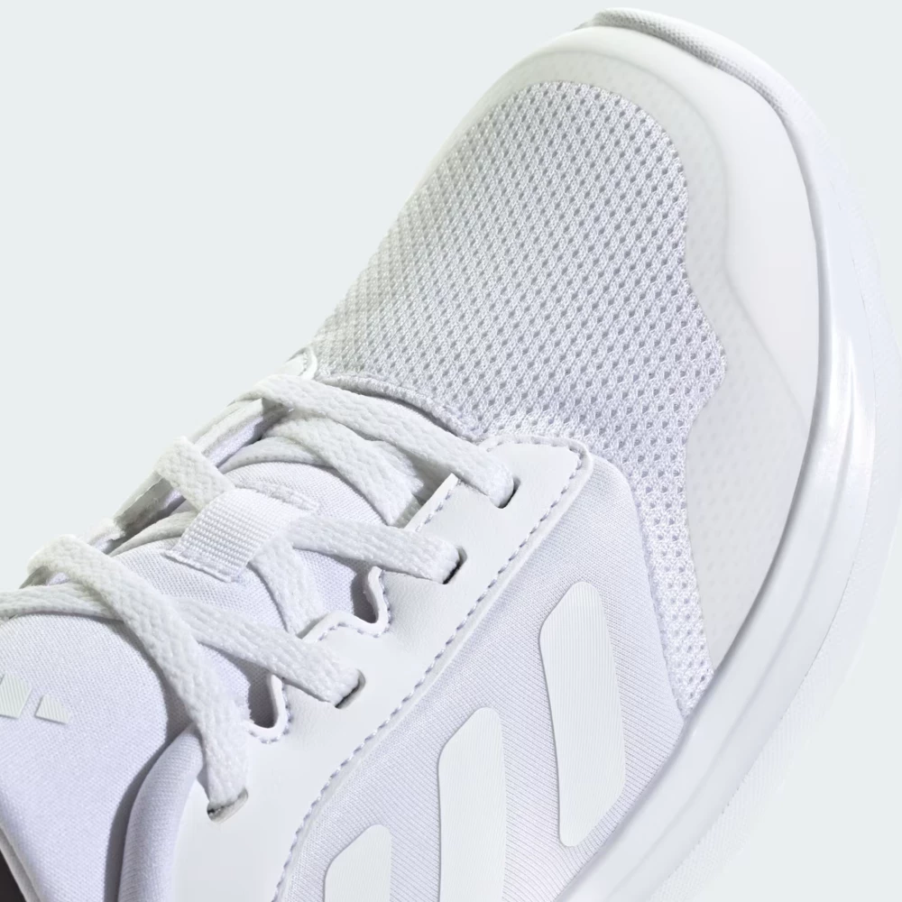 Adidas Tensaur Run 3.0 J — легкі кросівки для щоденного темпу і базових тренувань. Дихаючий текстильний верх у поєднанні із синтетичними накладками дарує комфорт і простоту догляду, підтримуючи оптимальний мікроклімат у русі. Класична центральна шнурівка забезпечує надійну посадку, а м’який комір і гладкі внутрішні шви знижують ризик натирань. Проміжна підошва з EVA та технологією CLOUDFOAM створює м’яку амортизацію і легкість кожного кроку, підходячи для літа та демісезону. Захисна вставка в носовій частині підвищує зносостійкість і допомагає убезпечити пальці, а округлий рельєф підошви підтримує природний перекат. М’яка устілка додає комфорту протягом дня. Монохромний білий колір зі світло-сірими акцентами та фірмові три смуги підкреслюють мінімалістичний стиль adidas. Модель у підлітковій розмірній сітці добре підходить як підліткам, так і дорослим для повсякденного використання і легких занять.