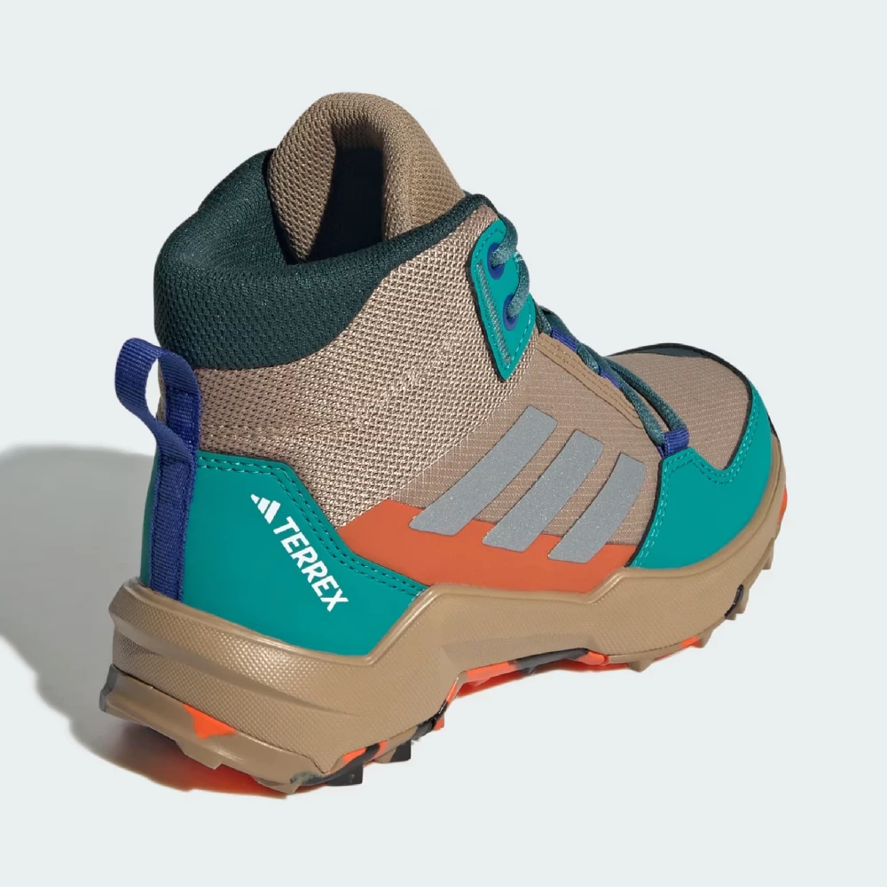 Колекція Adidas Terrex створена для любителів активного відпочинку на природі. Кожен елемент колекції виготовлений з урахуванням найвищих стандартів якості та функціональності, що гарантує комфорт у будь-яких умовах. Черевики Adidas Terrex Ax4R Mid K створені для юних дослідників, які завжди готові вирушати назустріч пригодам. Верх із текстильних матеріалів та міцних накладок забезпечує оптимальну підтримку стопи й комфорт навіть під час тривалих прогулянок. Завищена конструкція захищає щиколотку від дрібного пилу, бруду та камінців, а щільна шнурівка дозволяє зручно зафіксувати взуття, щоб воно ідеально прилягало під час активного руху. Амортизувальна проміжна підошва пом’якшує кожен крок та знижує навантаження на ноги, допомагаючи дитині залишатися активною довше. А гумова підошва Traxion із вираженим протектором забезпечує чудове зчеплення на різних поверхнях — від вологих каменів до ґрунтових стежок. Зовнішній вигляд черевиків продуманий до дрібниць: динамічне поєднання кольорів і логотип Terrex додають образу енергійності та спортивного настрою. Adidas піклується про зниження впливу на довкілля, тому модель виготовлено з використанням перероблених матеріалів.