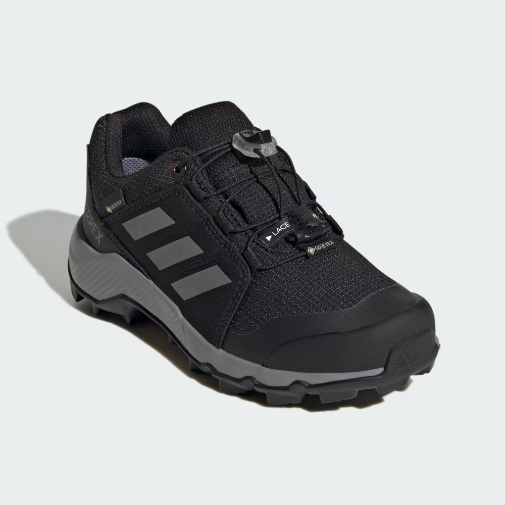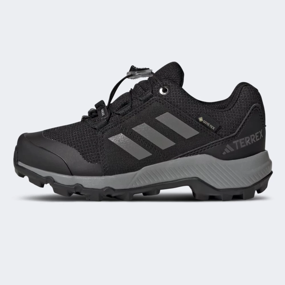 Колекція Adidas Terrex створена для тих, хто живе в ритмі природи та прагне досліджувати світ. У кожному елементі втілено інновації, надійність і турботу про комфорт, аби Ви могли почуватися впевнено у найрізноманітніших умовах — від прогулянки в лісі до підкорення нових маршрутів. Кросівки Adidas Terrex Gtx K створені для юних дослідників, які мріють про пригоди та не бояться нових викликів. Вони стануть надійним партнером у кожній подорожі — від гірських маршрутів і лісових стежок до активних прогулянок після школи. Верх із мембраною Gore-Tex забезпечує захист від легкого дощу та снігу, тож дитина зможе впевнено вирушати вперед. Посилена передня частина з литим носком надійно захищає від ударів каміння та гілок, що особливо важливо під час руху по нерівній місцевості. Швидка система шнурівки дозволяє зручно зафіксувати взуття одним рухом — без зайвих зупинок. Амортизувальна проміжна підошва підтримує стопу й пом’якшує кожен крок, роблячи рух природним і легким навіть на складних ділянках маршруту. Підметка Continental™ Rubber забезпечує максимальне зчеплення з будь-якими поверхнями, щоб підліток почувався впевнено в будь-яких умовах. Легендарні три смужки та логотип Terrex завершують образ, додаючи духу свободи та пригод. Модель рекомендована для дітей віком від 8 до 16 років. Adidas піклується про зниження впливу на довкілля, тому модель виготовлено з використанням перероблених матеріалів.