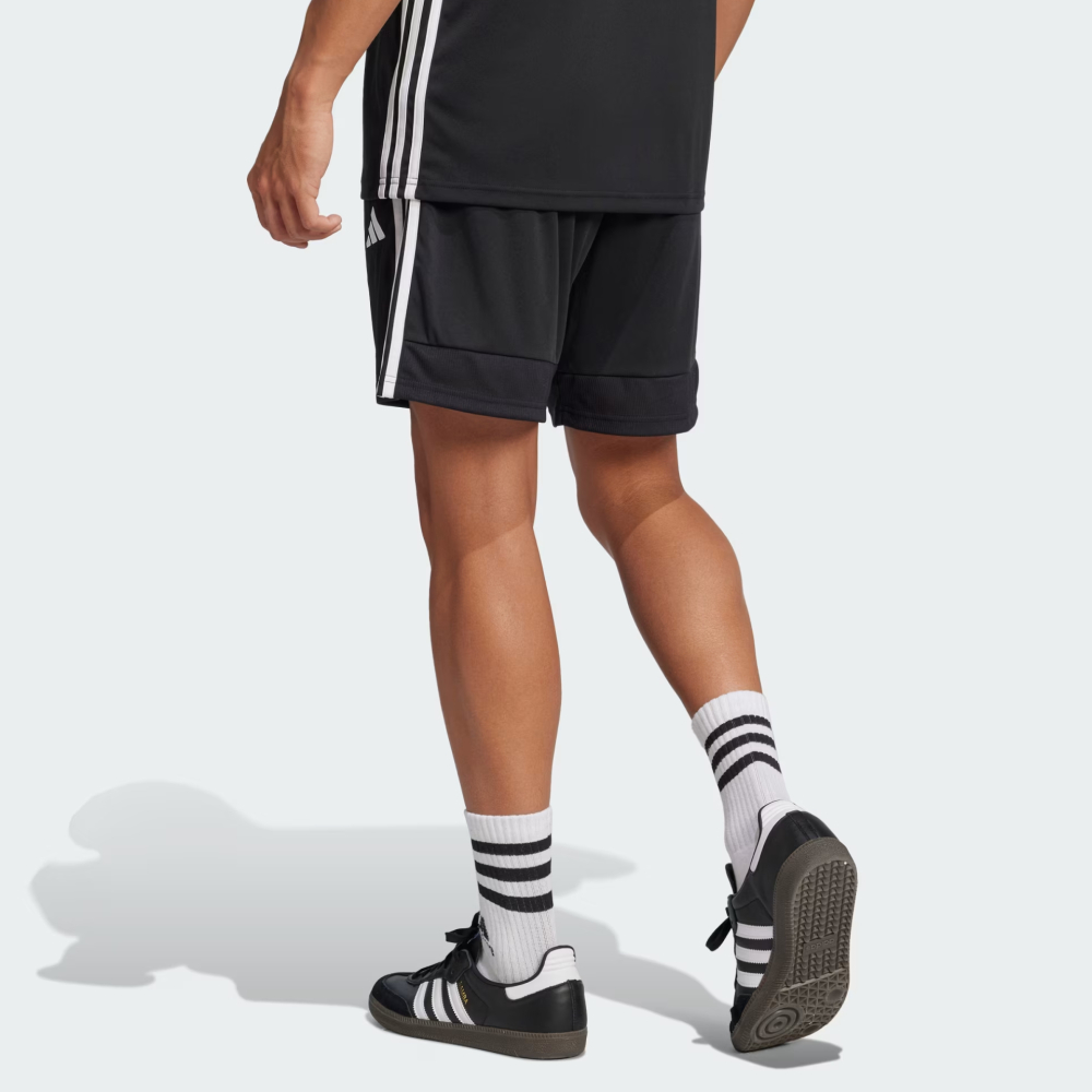 Шорти Adidas Tiro Es Sho створені для тих, хто не уявляє свого життя без футболу та прагне викладатися на повну в кожному матчі. Натхненні класичним дизайном легендарної лінійки Tiro, вони поєднують функціональність та стиль, щоб Ви могли зосередитися лише на грі. Шорти виготовлені з гладенької та приємної до тіла тканини, яка гарантує відчуття комфорту незалежно від Вашої активності. Класичний крій і оптимальна довжина штанин дарують повну свободу рухів, а еластичний пояс зі шнурком надає надійну фіксацію, щоб Ви могли впевнено рухатись. Бічні кишені на блискавках додають практичності — у них зручно зберігати дрібниці, які завжди варто мати при собі. Культові три смужки та фірмовий логотип Adidas не лише додають впізнаваного стилю, а й підкреслюватимуть Вашу відданість грі та легендарному бренду. Adidas піклується про зниження впливу на довкілля, тому модель виготовлено з використанням перероблених матеріалів.