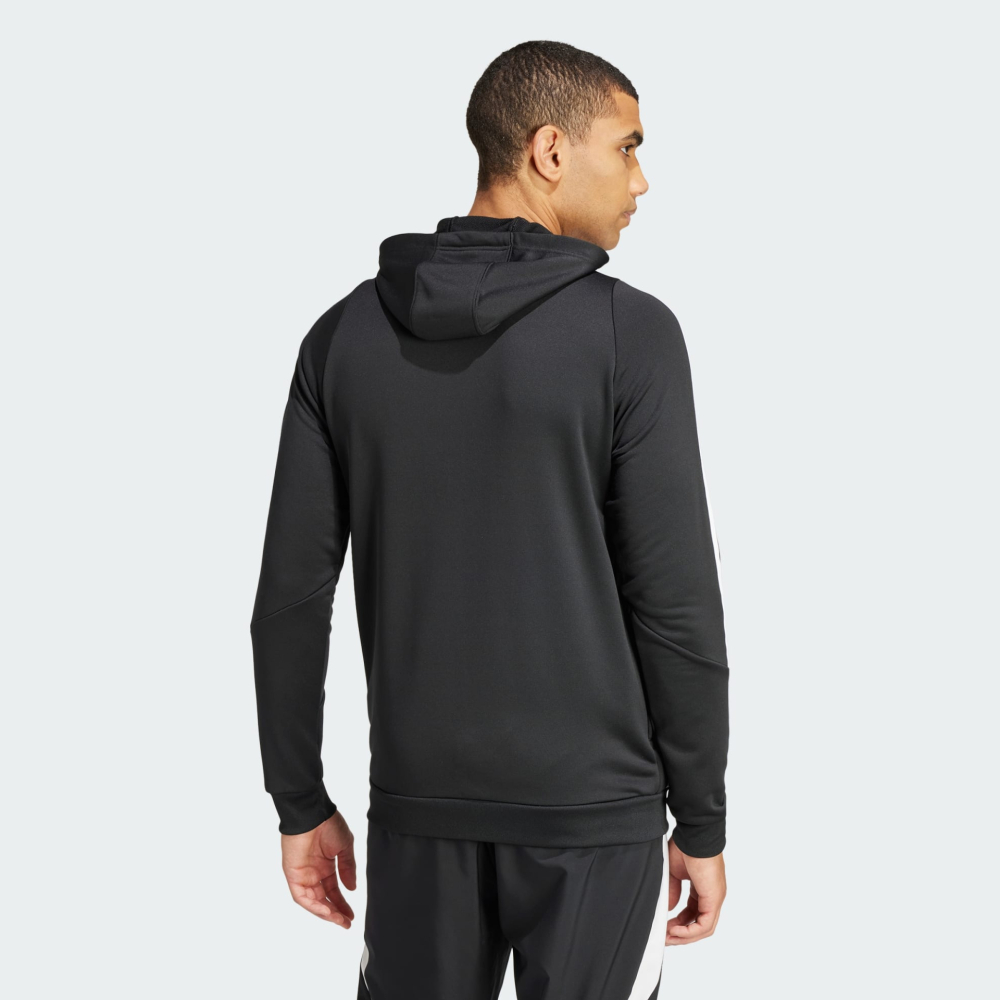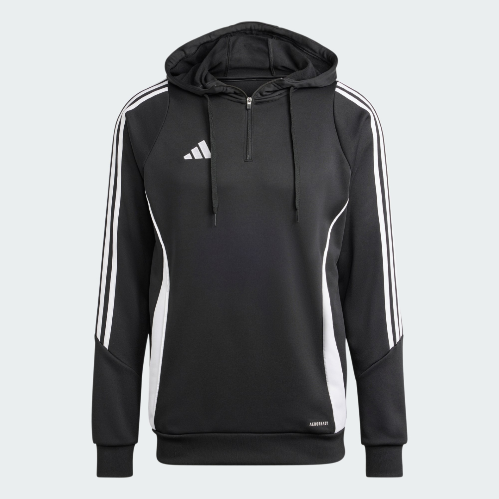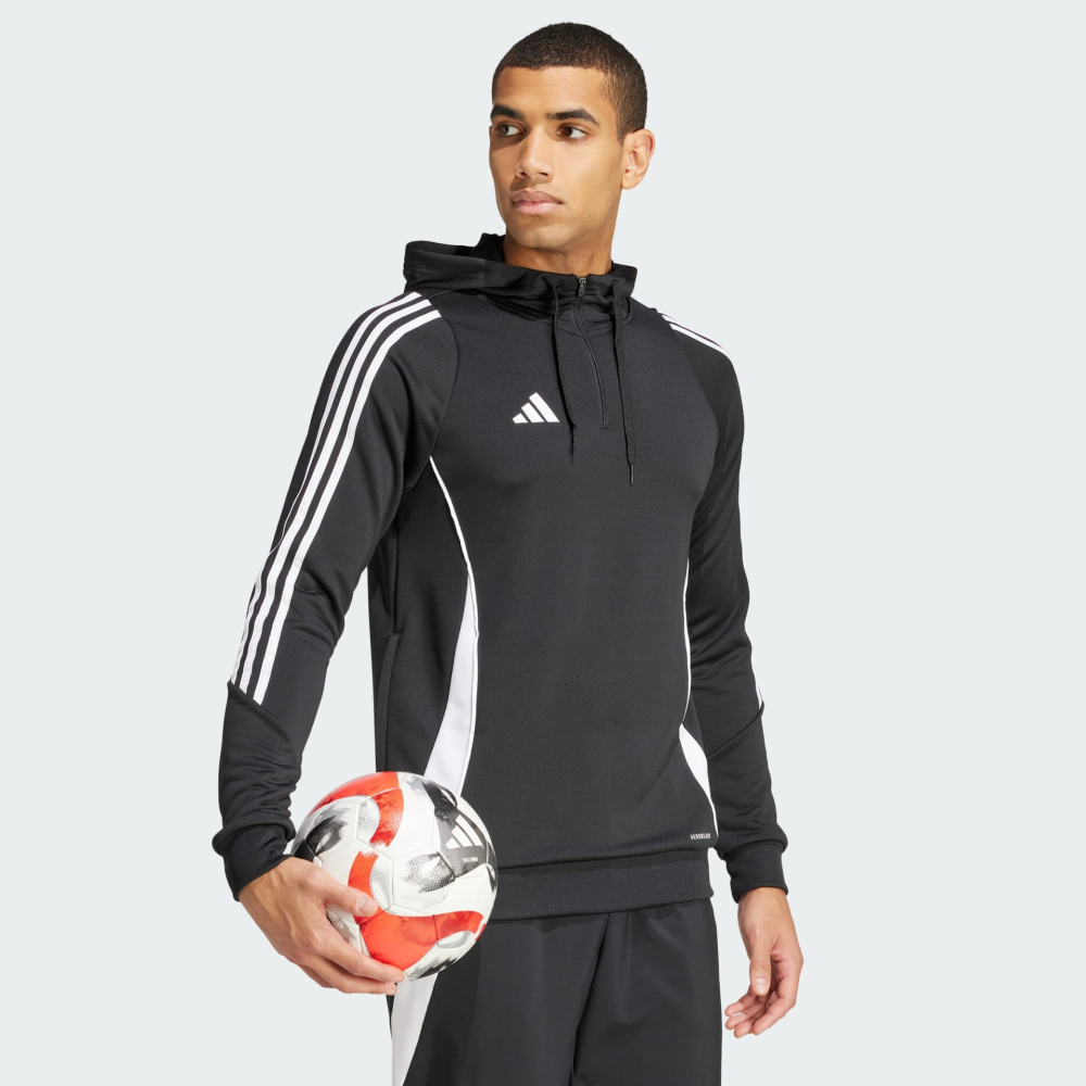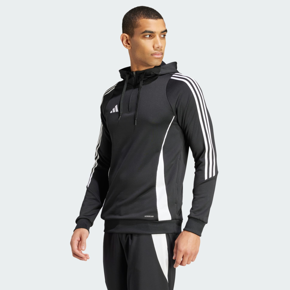 Колекція Adidas Performance заснована на використанні новітніх досягнень лабораторії Adidas та створена для забезпечення комфорту під час тренувань. Кофта Adidas Tiro24 Trhood створена у класичному дизайні футбольних речей лінійки Tiro 24. Вона виготовлена з технологічної тканини, яка відводить під від шкіри, що гарантуватиме сухість незалежно від інтенсивності Ваших тренувань. Класичний крій не сковуватиме Ваших рухів, а манжети на рукавах та по низу кофти покращуватимуть фіксацію. Капюшон з текстильним шнурком, блискавка до грудей та бічні кишені на блискавках зроблять Ваші тренування зручними. Кофта декорована стильними трьома смугами та логотипом. Adidas піклується про зниження впливу на довкілля, тому матеріал виготовлено зі 100% перероблених волокон