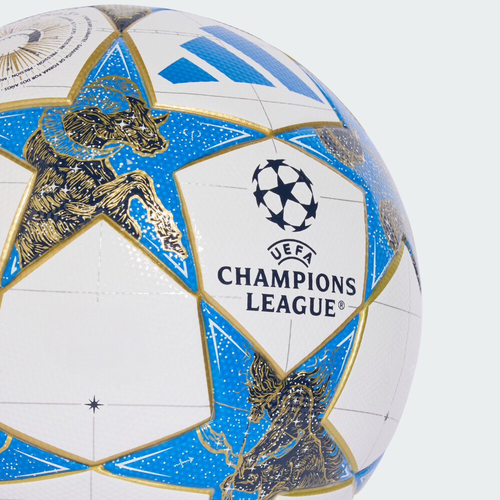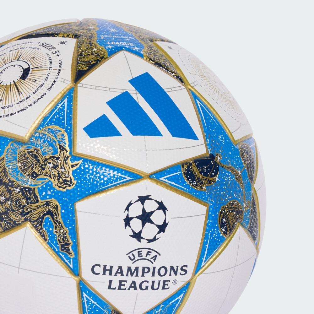 М’яч Adidas UCL Lge — це Ваш пропуск у світ великого футболу, де кожен удар, передача та гол наповнені духом Ліги чемпіонів. Створений за мотивами офіційного м’яча головного клубного турніру Європи, він подарує Вашим іграм та тренуванням енергію професійного рівня. Виготовлений зі зносостійкого синтетичного матеріалу, тому поєднує витривалість і стабільно високі ігрові характеристики. Безшовна конструкція гарантує ідеальну траєкторію польоту, а міцна бутилкаучукова камера зберігає стабільний тиск і передбачувану поведінку м’яча. Вишукані елементи дизайну, натхненні астрономічним годинником і знаками зодіаку, роблять м’яч яскравим акцентом на полі та вираженням Вашої пристрасті до гри. М'яч отримав відзнаку якості FIFA Quality, що підтверджує його відповідність міжнародним стандартам, тож він чудово підходить як для серйозних матчів, так і для активних тренувань. З ним кожна гра — крок до Вашої власної перемоги. Adidas піклується про зниження впливу на довкілля, тому модель виготовлено з використанням перероблених матеріалів.